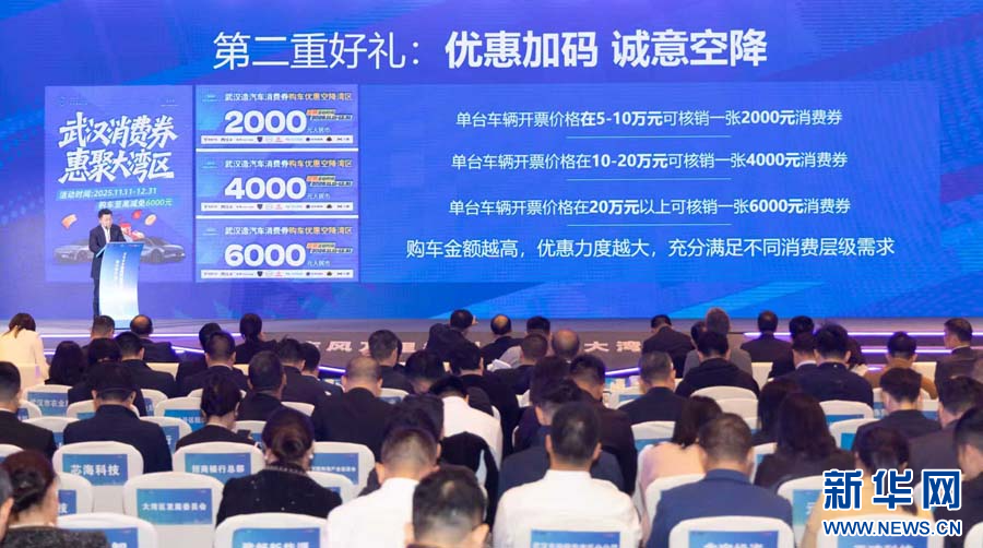 圖為活動(dòng)面向大灣區(qū)消費(fèi)者發(fā)放汽車(chē)消費(fèi)券 新華網(wǎng)發(fā) 李巋攝