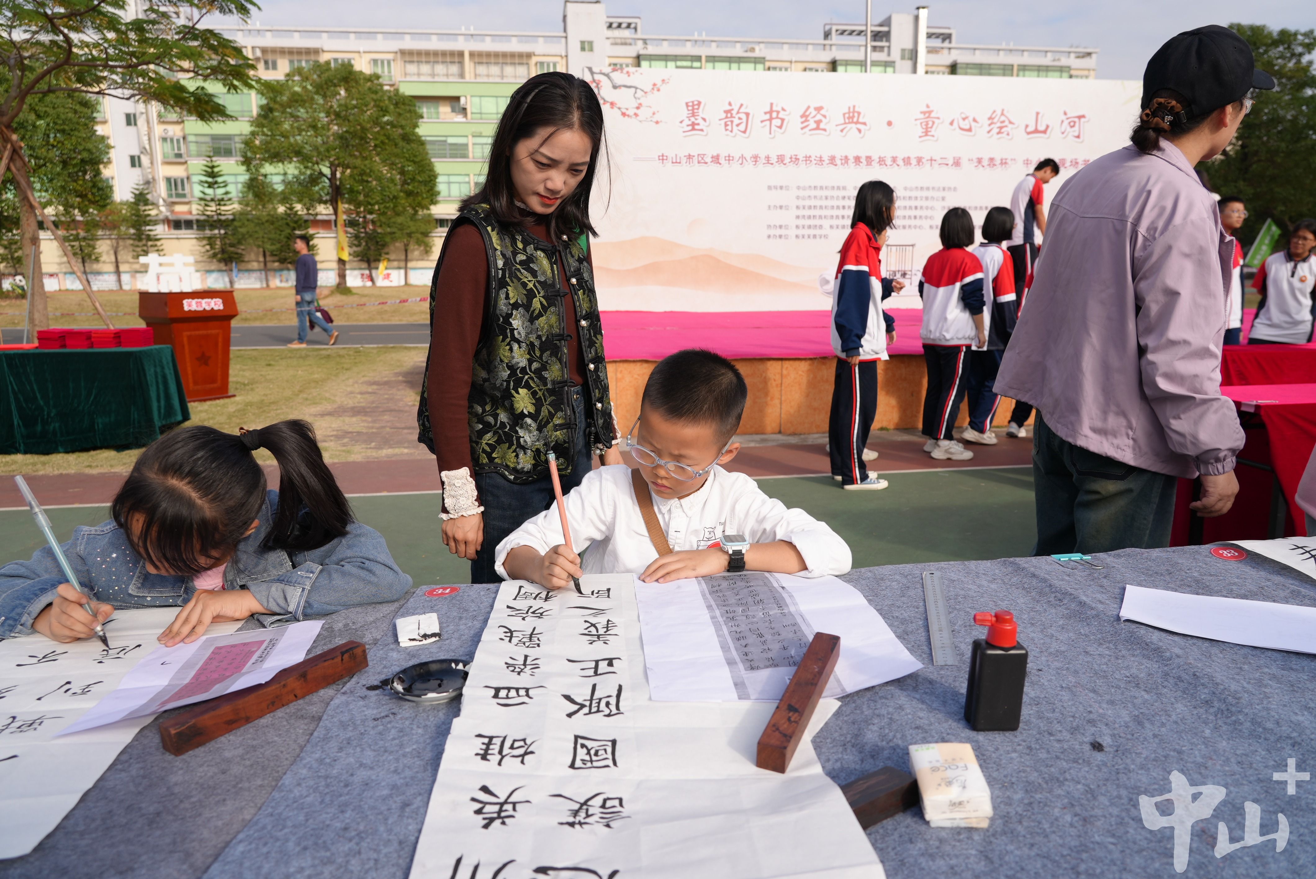 11月29日下午,中山市區(qū)域中小學(xué)生現(xiàn)場(chǎng)書法邀請(qǐng)賽暨板芙鎮(zhèn)第十二屆“芙蓉杯”中小學(xué)現(xiàn)場(chǎng)書法比賽決賽在板芙芙蓉學(xué)校落幕。來自板芙、大涌、沙溪、神灣、三鄉(xiāng)五鎮(zhèn)街的近400名書法小將齊聚一堂,以筆為媒、以墨為魂,在橫豎撇捺間書寫經(jīng)典,在點(diǎn)畫頓挫中描繪山河,上演了一場(chǎng)兼具文化底蘊(yùn)與少年風(fēng)采的書法盛宴。