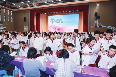 12月13日,中山市煙洲中學(xué)舉行主題為“智匯煙洲 職引未來”第三屆校園模擬招聘會。1620名高一學(xué)子化身“職場新人”,在面試官面前自信“闖關(guān)”,沉浸式感受求職氛圍。