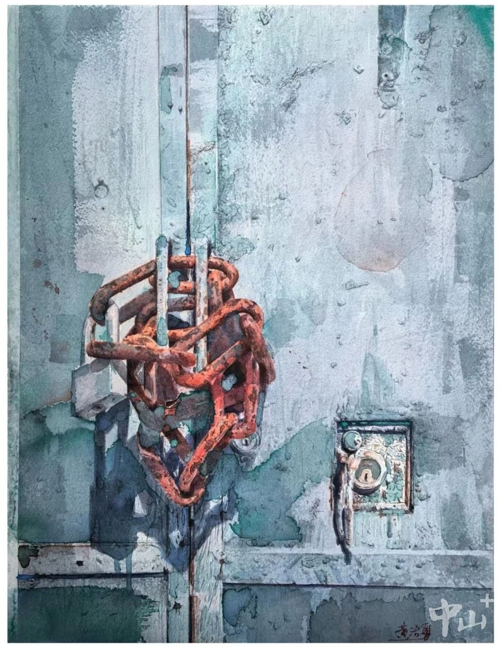 中山入選的三件作品均以獨特視角與精湛技藝脫穎而出:市美協(xié)主席肖偉的《殘垣系列之六:追憶》,以廢磚與紙飛機為創(chuàng)作素材,通過紅與白的色彩碰撞、虛實相生的光影處理,將廢墟與希望的意象巧妙融合,兼具思想深度與藝術張力;市美協(xié)理事黃治勇的《歲月無聲》,聚焦舊門板與銹跡斑斑的鎖鏈,灰藍底色與赭紅銹跡交織輝映,定格下日常中易被忽略的歲月溫度;市美協(xié)副秘書長肖力強的油畫《青城天下幽》,以青綠為主色調,糅合寫意與抽象手法,憑借厚重的肌理質感與鮮明的冷暖對比,勾勒出山林清幽空靈的自然意境。三件作品雖題材各異、畫種不同,卻共同展現(xiàn)了中山藝術家扎根生活、追求極致的創(chuàng)作態(tài)度,以及兼具個性化表達與專業(yè)功底的藝術水準。