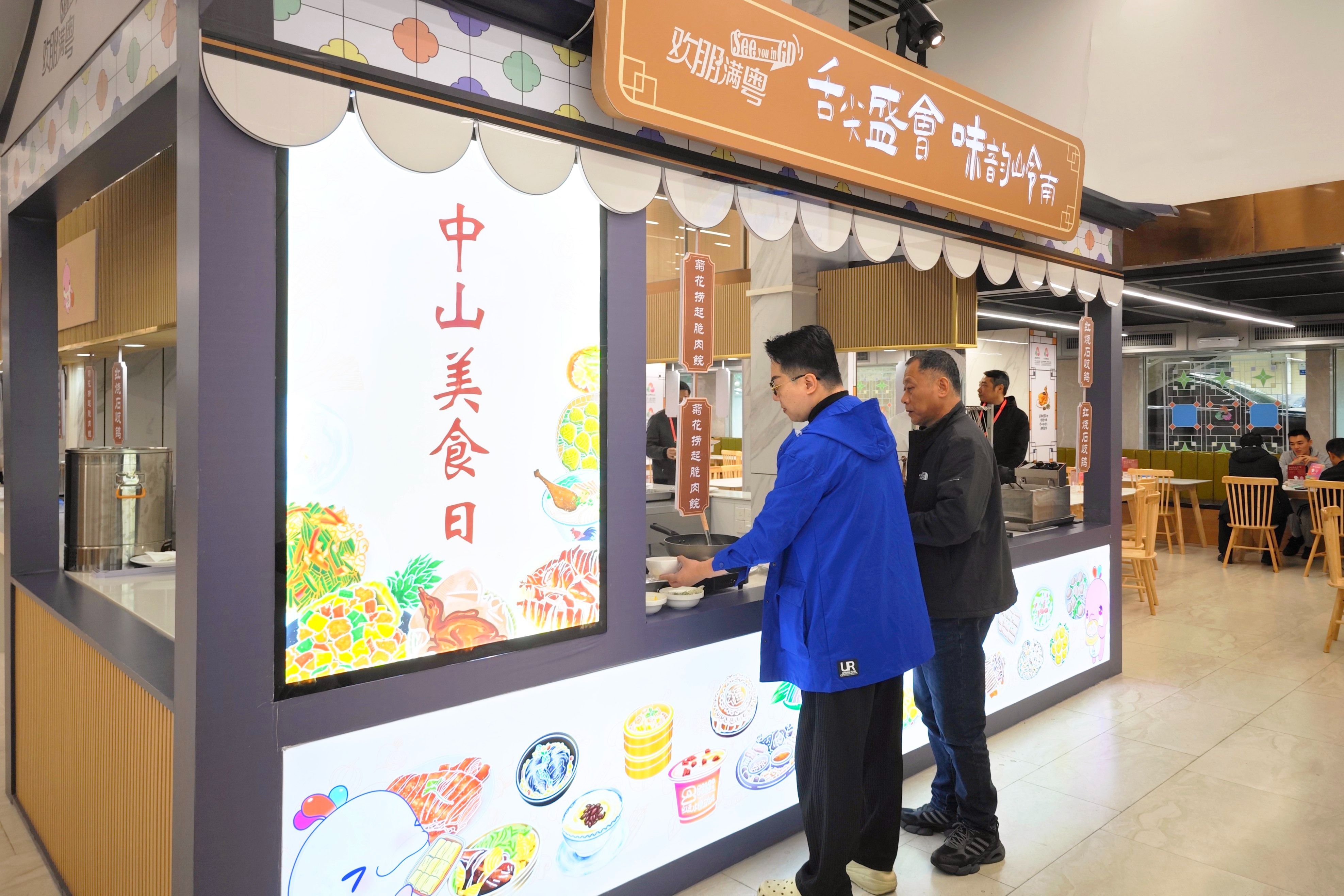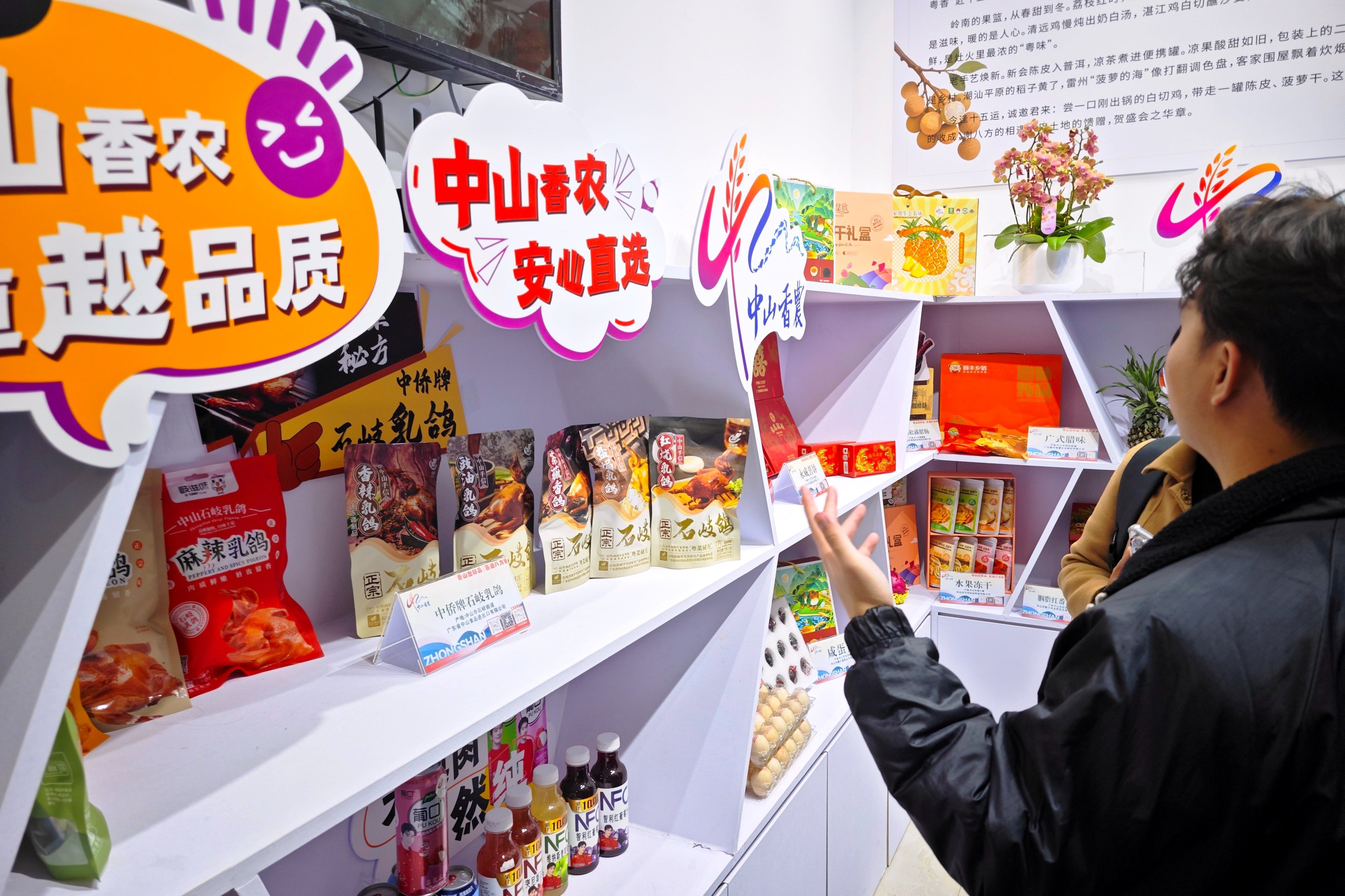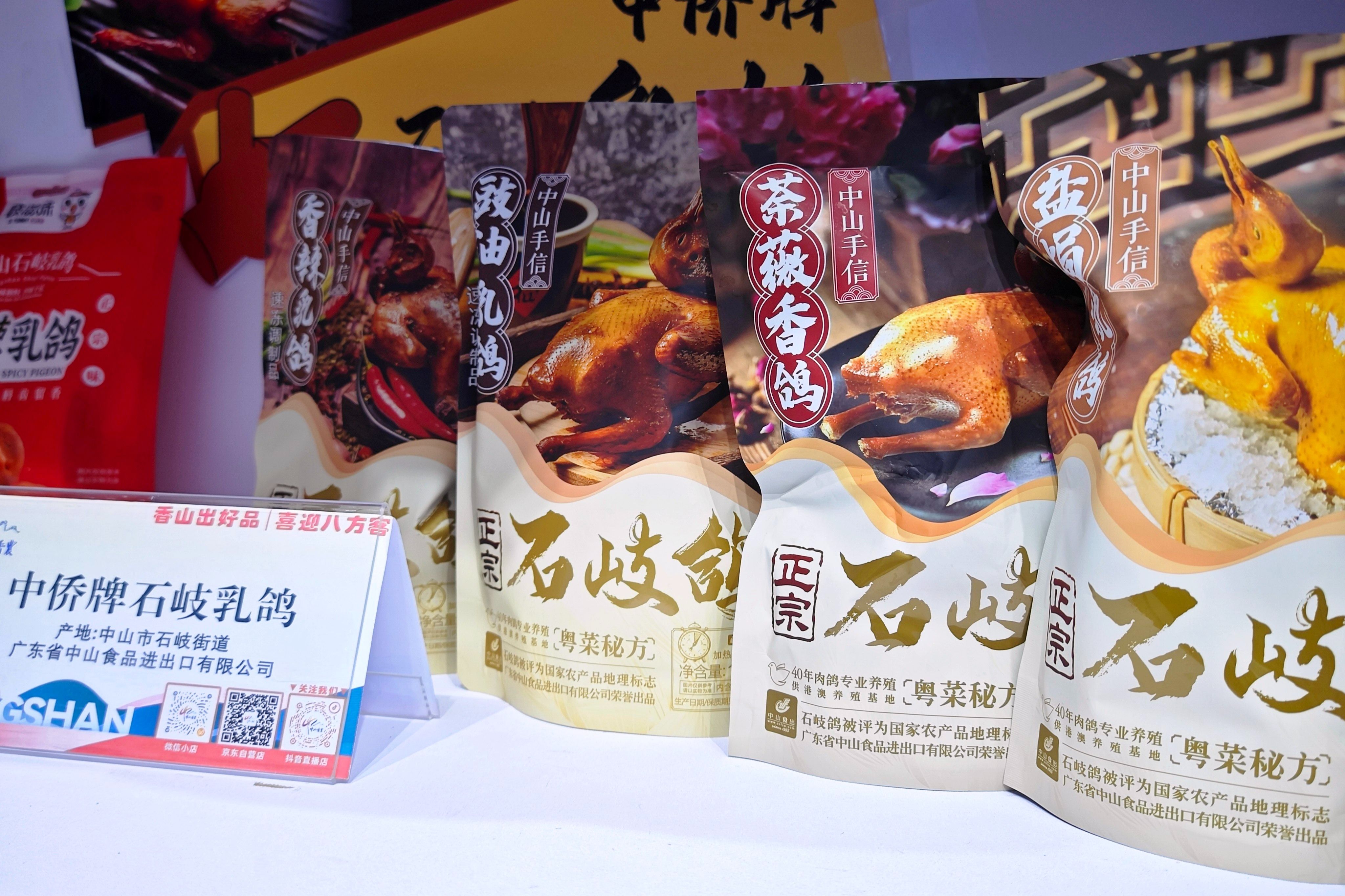 當(dāng)天的十五運會主媒體中心餐廳內(nèi),近100款特色農(nóng)產(chǎn)品與經(jīng)典中山美食匯聚一堂。右側(cè)入口處的“農(nóng)立方”展館內(nèi),“香山出好品,喜迎八方客”的標(biāo)語格外醒目。石岐乳鴿、黃圃臘味禮盒、神灣菠蘿酥、小欖菊花肉等拳頭產(chǎn)品整齊陳列,以精致包裝和深厚文化底蘊吸引著眾多目光。