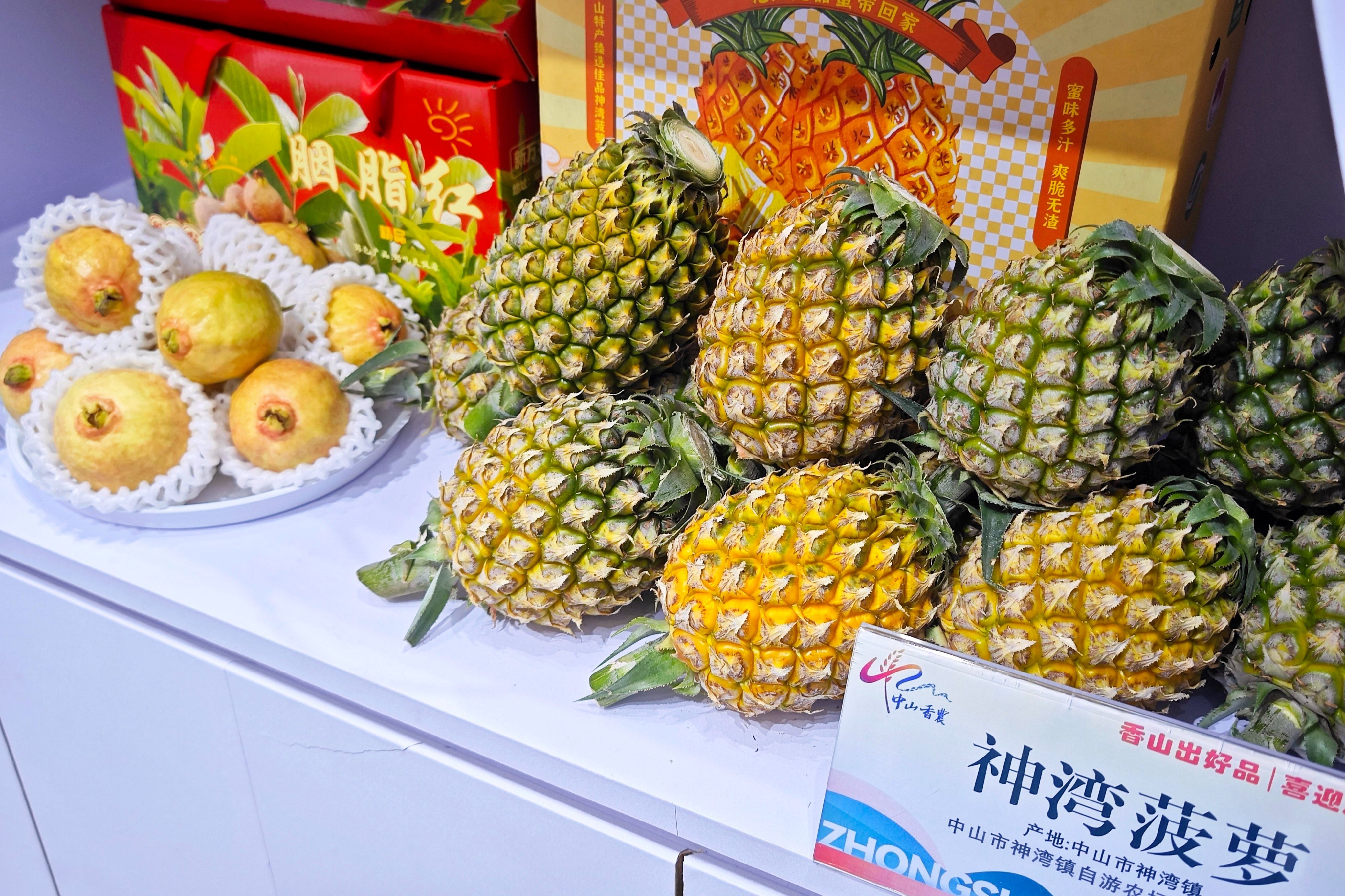 “這款胭脂紅番石榴,產(chǎn)自中山市坦洲鎮(zhèn),口感軟糯,香氣濃郁,您嘗嘗看!”市農(nóng)投公司宣傳運營部工作人員毛俊云現(xiàn)場化身“推介官”,詳細講解每款產(chǎn)品的種植工藝與文化故事。記者看到,五桂山金煌香芒制成的芒果干色澤金黃,入口酸甜軟糯;坦洲胭脂紅番石榴香氣獨特,清甜多汁;皮薄肉甜、爽脆無渣的神灣菠蘿更是成為現(xiàn)場的“人氣明星”,引得大家紛紛駐足品嘗、贊不絕口。