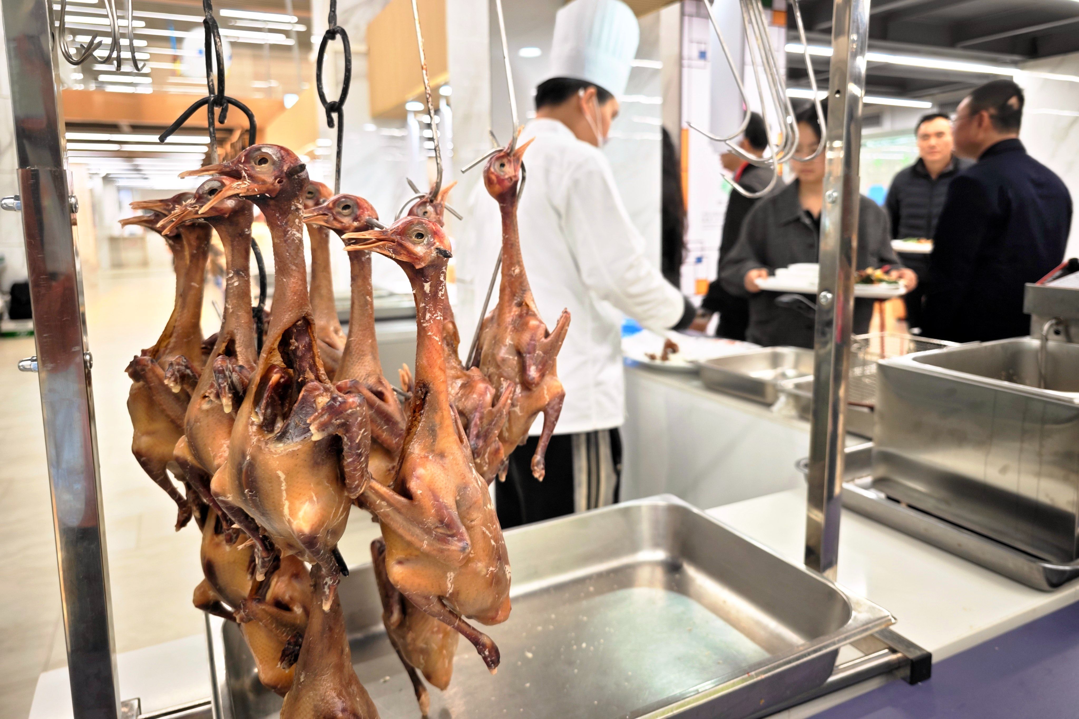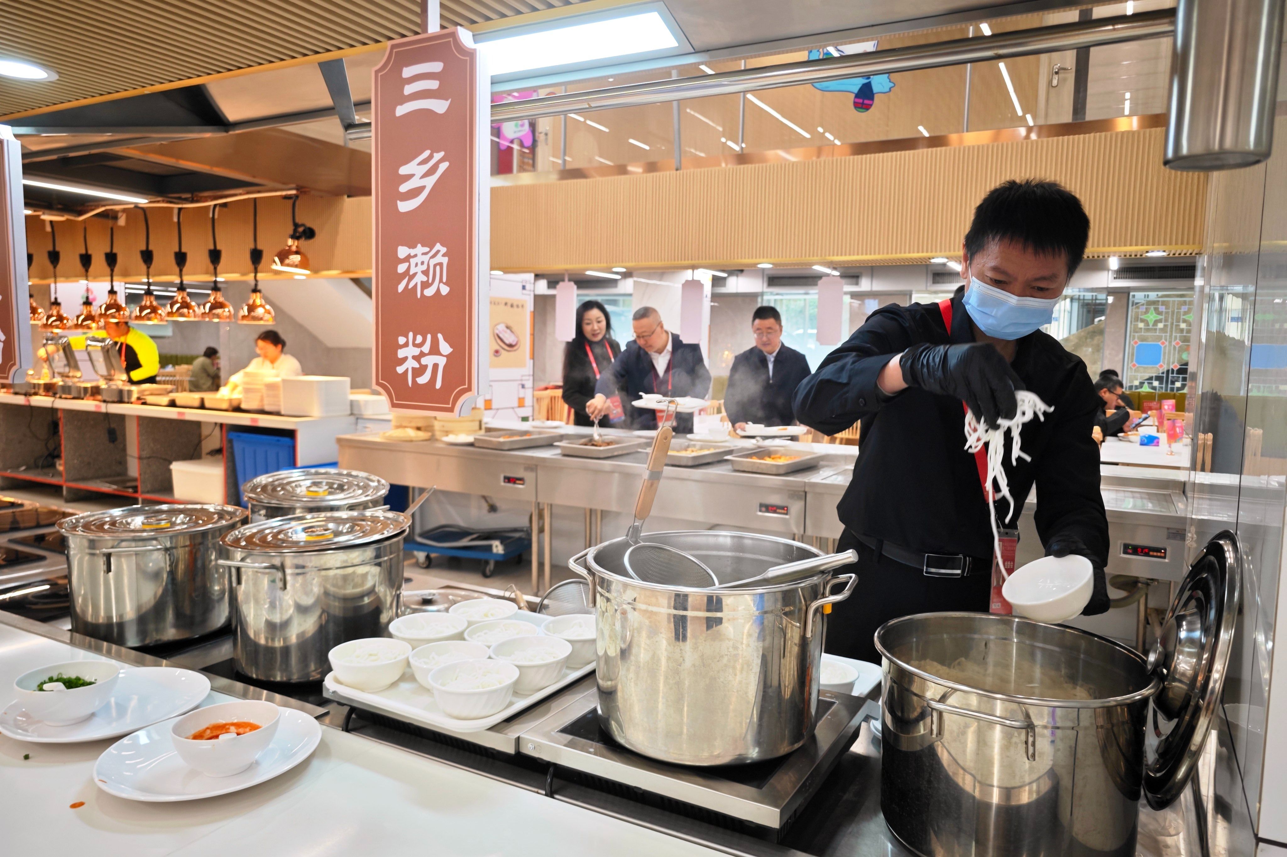 當(dāng)天,主媒體中心餐廳持續(xù)供應(yīng)石岐乳鴿、脆肉鯇、三鄉(xiāng)瀨粉等中山美食。嶺南美食展演項目負責(zé)人陳偉斌介紹道,餐廳準(zhǔn)備了8道具有中山特色的美食,既有紅燒石岐乳鴿、菊花撈起脆肉鯇、黃圃臘味小炒皇、神灣菠蘿咕嚕肉、白切三角沙欄雞等中山地方特色的美食,也有欒樨餅、三鄉(xiāng)瀨粉等中山小吃?!斑@些菜的原材料都是從中山采購回來的,由蓮香樓酒家的廚師現(xiàn)場制作。”陳偉斌說,餐廳每天接待近300名來自全國各地的記者,當(dāng)天光石岐乳鴿就供應(yīng)了40多只。