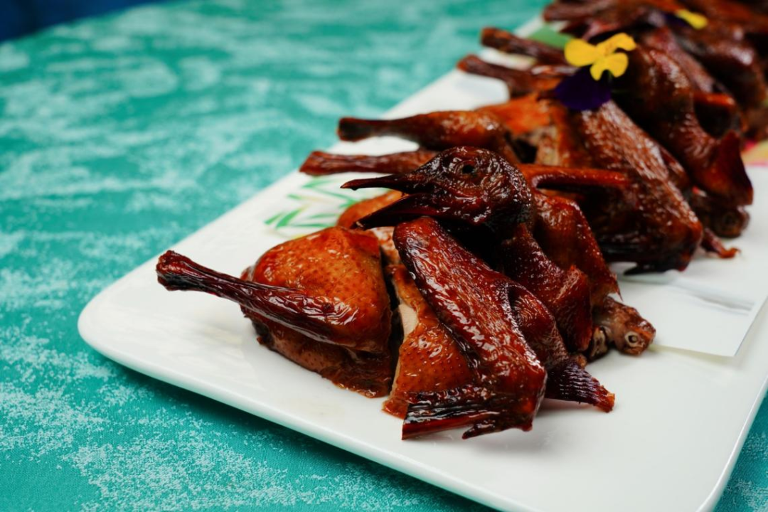 作為2025年獲批的國(guó)家地理標(biāo)志產(chǎn)品,石岐鴿是優(yōu)質(zhì)肉鴿品種的代表,其產(chǎn)地嚴(yán)格限定在中山市下轄所有鎮(zhèn)街。這一特色品種的歷史可追溯至百年前,由華僑引進(jìn)“白羽王鴿”等良種與本地鴿雜交優(yōu)化而成,天生具備體大肉嫩的特質(zhì)。作為地理標(biāo)志產(chǎn)品,它的飼養(yǎng)標(biāo)準(zhǔn)極為嚴(yán)苛:鴿舍遠(yuǎn)離污染區(qū),產(chǎn)鴿單對(duì)籠養(yǎng)、后備種鴿網(wǎng)籠群養(yǎng),飼料中搭配含本地赤紅壤、蠔殼片的保健砂;乳鴿一周齡內(nèi)靠親鴿喂鴿乳,10日齡后由親鴿灌喂鴿乳、原糧等混合食料,飼養(yǎng)至18-30日齡方可出欄。其外觀形如芭蕉蕾,以白羽為主,胸圓腳紅,鼻瘤與嘴呈粉白色,成年鴿體重可達(dá)650-750g;肉質(zhì)更是兼具嫩、多汁、味鮮的優(yōu)勢(shì),還帶有獨(dú)特丁香味,且蛋白質(zhì)含量高、脂肪和膽固醇含量低。此次石岐鴿以經(jīng)典紅燒做法亮相品鑒會(huì),醬汁與鮮嫩鴿肉深度融合,完美詮釋了“一鴿勝九雞”的美譽(yù)。