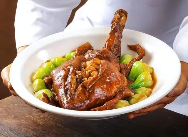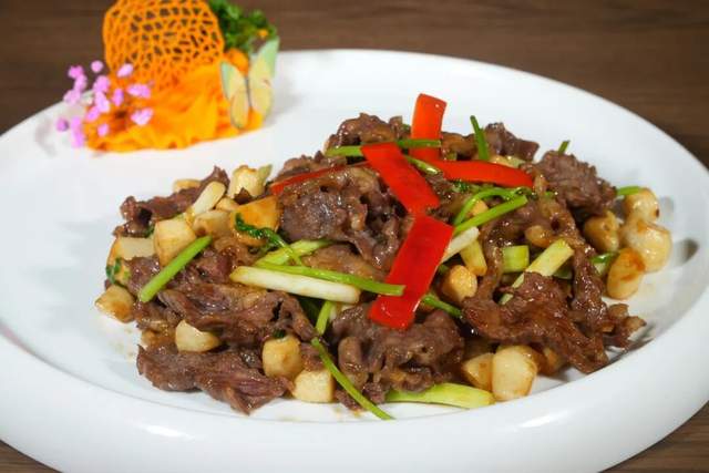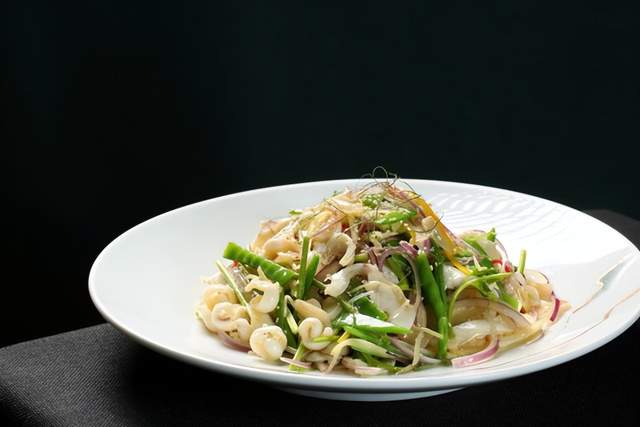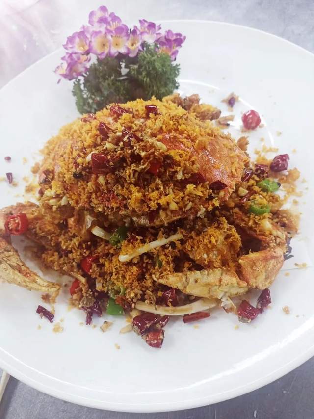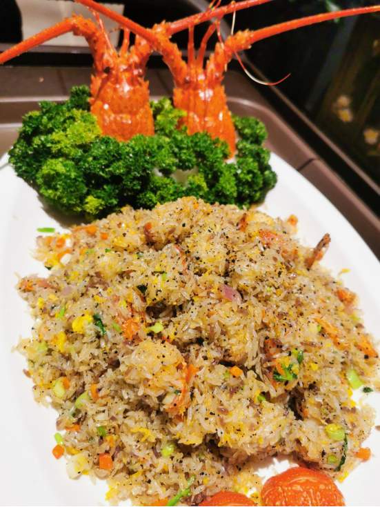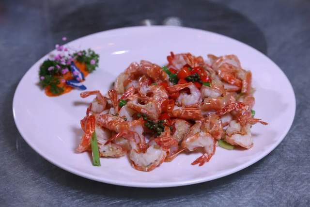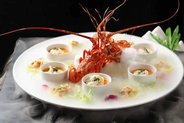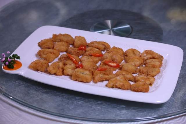一道彰顯氣派的宴席大菜,以鮮活龍蝦肉炒制嫩滑蛋清,置于盤中央,周邊環(huán)繞炸至金黃的龍蝦球。蛋清溫潤(rùn)如玉,蝦肉Q彈鮮甜。