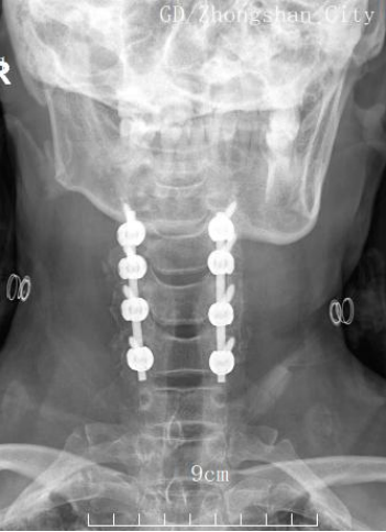 近日,中山市第六人民醫(yī)院脊柱外科二區(qū)團(tuán)隊(duì)成功為一名罹患嚴(yán)重頸椎管狹窄并伴脊髓神經(jīng)損傷的中年女性患者,實(shí)施了“頸椎后路減壓側(cè)塊螺釘內(nèi)固定+關(guān)節(jié)突關(guān)節(jié)植骨融合術(shù)”。