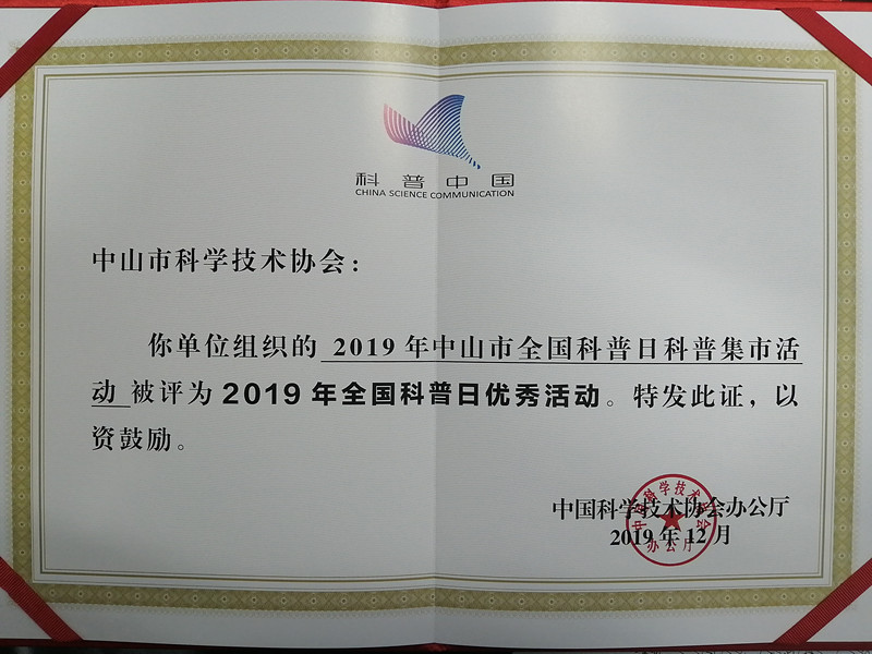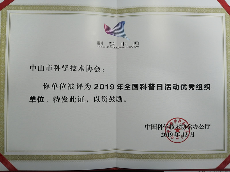 日前,中國科協(xié)公布了2019年全國科普日有關(guān)組織單位和活動表揚名單,中山市科學(xué)技術(shù)協(xié)會喜獲“優(yōu)秀組織單位”和全國優(yōu)秀活動獎。中山市科協(xié)從2013年起已連續(xù)第7年獲得由中國科協(xié)頒發(fā)的全國科普日宣傳活動“優(yōu)秀組織獎”稱號。
