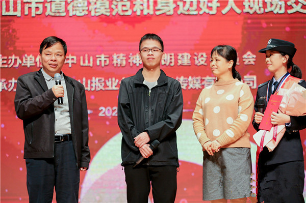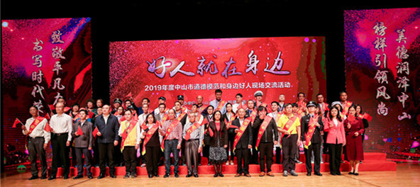 今天下午,在市文化藝術(shù)中心小劇場,2019年度中山市道德模范和身邊好人現(xiàn)場交流活動舉行?,F(xiàn)場舉辦了敬業(yè)奉獻、誠實守信、助人為樂、孝老愛親、見義勇為“中山好人”發(fā)布儀式,2019年評選出的69位中山好人、7位廣東好人、2位中國好人受表彰。