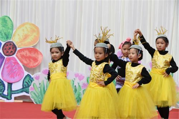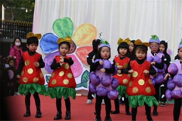 “大家好,今天我們班帶來的節(jié)目是《三只小豬》!”奶聲奶氣地念完開場白,一群穿著各色服裝,扮演樹木、稻草和磚塊的孩子便上了舞臺,用歡快舞蹈演繹繪本故事。