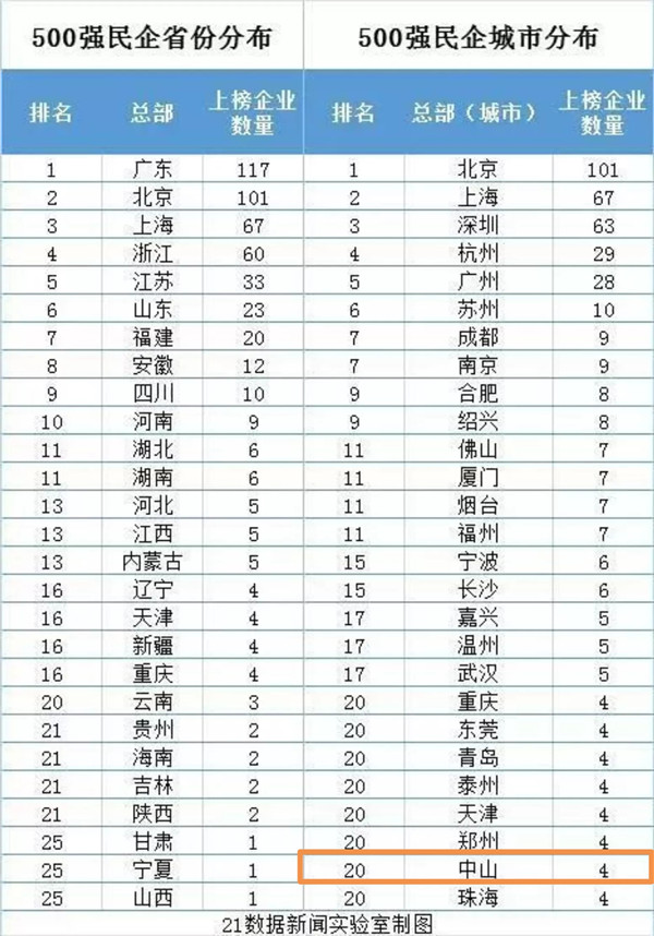 該榜單從省份來看,廣東以117家企業(yè)居首。從城市分布來看,北京、上海和深圳分別以101家、67家和63家位列前三,中山與重慶、東莞、青島、泰州、天津、鄭州、珠海各有4家,并列第20位。