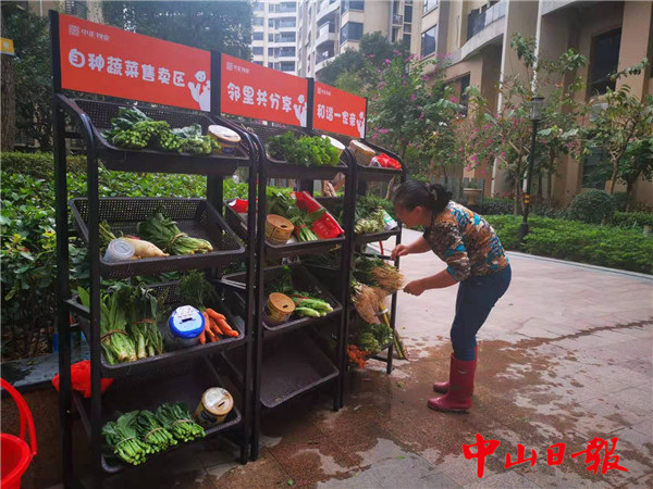 羅鳳珍6年前來到中山,幫著帶孩子。孩子上學(xué)后,閑不下來的她就在附近的空置地上開辟了一塊小菜園,“蔬菜上市后,自家吃不完,就拿到無人攤位擺賣,每天賣十五六把,因?yàn)椴淮蛩帲苁軞g迎?!彼f,為了方便賣菜,小區(qū)物業(yè)還專門制作了擺菜的架子,還有清潔人員負(fù)責(zé)清掃。