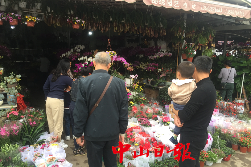 花市商戶在布置,固定檔口的花市經(jīng)營者也沒閑著。由于今年花市安置在沙崗墟文化廣場,和固定花市檔口僅一路之隔,兩者形成了面對面競爭,所以固定檔口的花市經(jīng)營者早早秣兵歷馬,備足了貨源。記者現(xiàn)場看到,固定檔口的各大花市經(jīng)營者里里外外都堆滿了鮮花,金桔,蝴蝶蘭,杜鵑,牡丹,菊花,水仙,桃花,……,應有盡有。