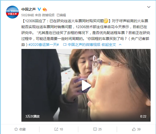 值得一提的是。12306方面還表示,尤其是對于在已經(jīng)買了去程的情況下,是否優(yōu)先配返程車票?目前正在研究過程中,可能還是需要一定時間周期。