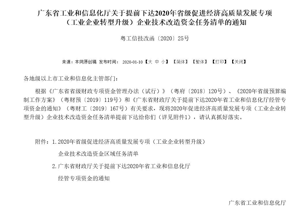 近日,省工信廳提前下達(dá)了“2020年促進(jìn)經(jīng)濟(jì)高質(zhì)量發(fā)展專項(xiàng)(工業(yè)企業(yè)轉(zhuǎn)型升級)企業(yè)技術(shù)改造資金任務(wù)清單”。