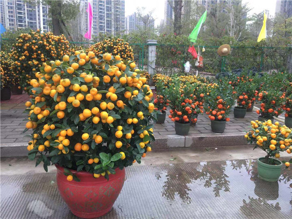 馮先生的檔口長達(dá)數(shù)十米,全部售賣自種年桔。“我們從佛山過來,這幾天已經(jīng)有不少企業(yè)來選購?!瘪T先生介紹,今年入冬遲緩,適宜的氣候不但使年桔長勢越來越茂盛,而且果實(shí)大顆飽滿。價格方面,直徑70cm、高1.8米左右的大型年桔售價530元/盆,直徑80cm、高2米左右的年桔售價1200元/盆。