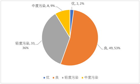 據(jù)統(tǒng)計(jì),2019年第四季度中山市空氣質(zhì)量有效監(jiān)測(cè)天數(shù)為92天,其中空氣質(zhì)量?jī)?yōu)2天,良49天,輕度污染33天,中度污染8天,未出現(xiàn)重度污染以上情況。第四季度中山市空氣質(zhì)量指數(shù)(AQI)平均達(dá)標(biāo)天數(shù)比例為55.4%,其中優(yōu)占2.2%,良占53.2%;超標(biāo)天數(shù)比例為44.6%,綜合污染指數(shù)為5.00。