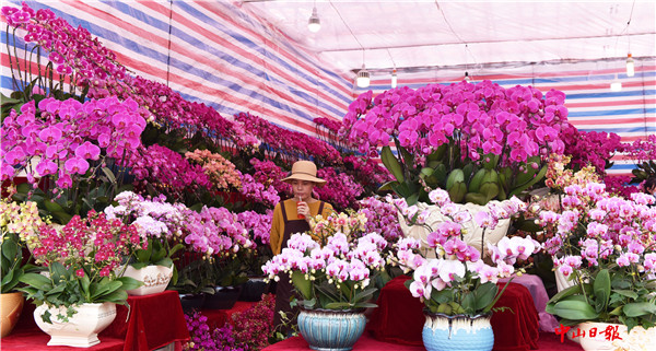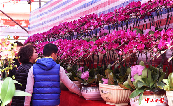 廣東大金美蝴蝶蘭園藝連續(xù)多年在沙崗墟花市展銷,“今年氣溫比較高,蝴蝶蘭質(zhì)量比較穩(wěn)定,價(jià)格與去年差不多。”其負(fù)責(zé)人陳倫建告訴記者,今年他帶了甜格格、冰山美人、小飛象等新品種亮相沙崗墟迎春花市,美麗的蝴蝶蘭吸引了許多市民駐足拍照。