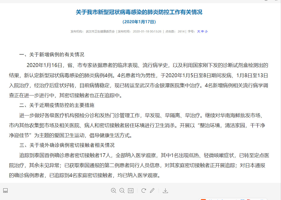 據(jù)武漢衛(wèi)健委17日通報(bào),2020年1月16日,省、市專家依據(jù)患者的臨床表現(xiàn)、流行病學(xué)史,以及利用國(guó)家剛下發(fā)的診斷試劑盒檢測(cè)出的結(jié)果,新認(rèn)定新型冠狀病毒感染的肺炎病例4例。