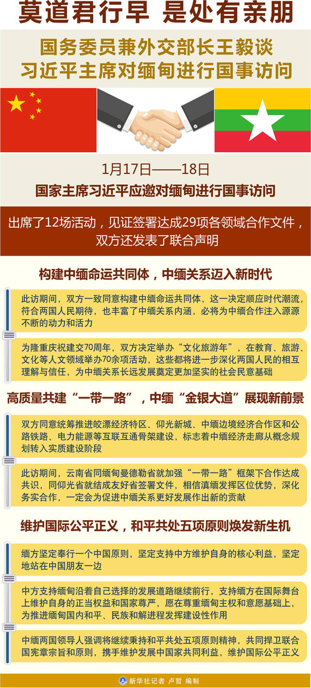 1月17日至18日,國(guó)家主席習(xí)近平應(yīng)邀對(duì)緬甸進(jìn)行國(guó)事訪問(wèn)。行程結(jié)束之際,國(guó)務(wù)委員兼外交部長(zhǎng)王毅向隨行記者介紹此訪情況。