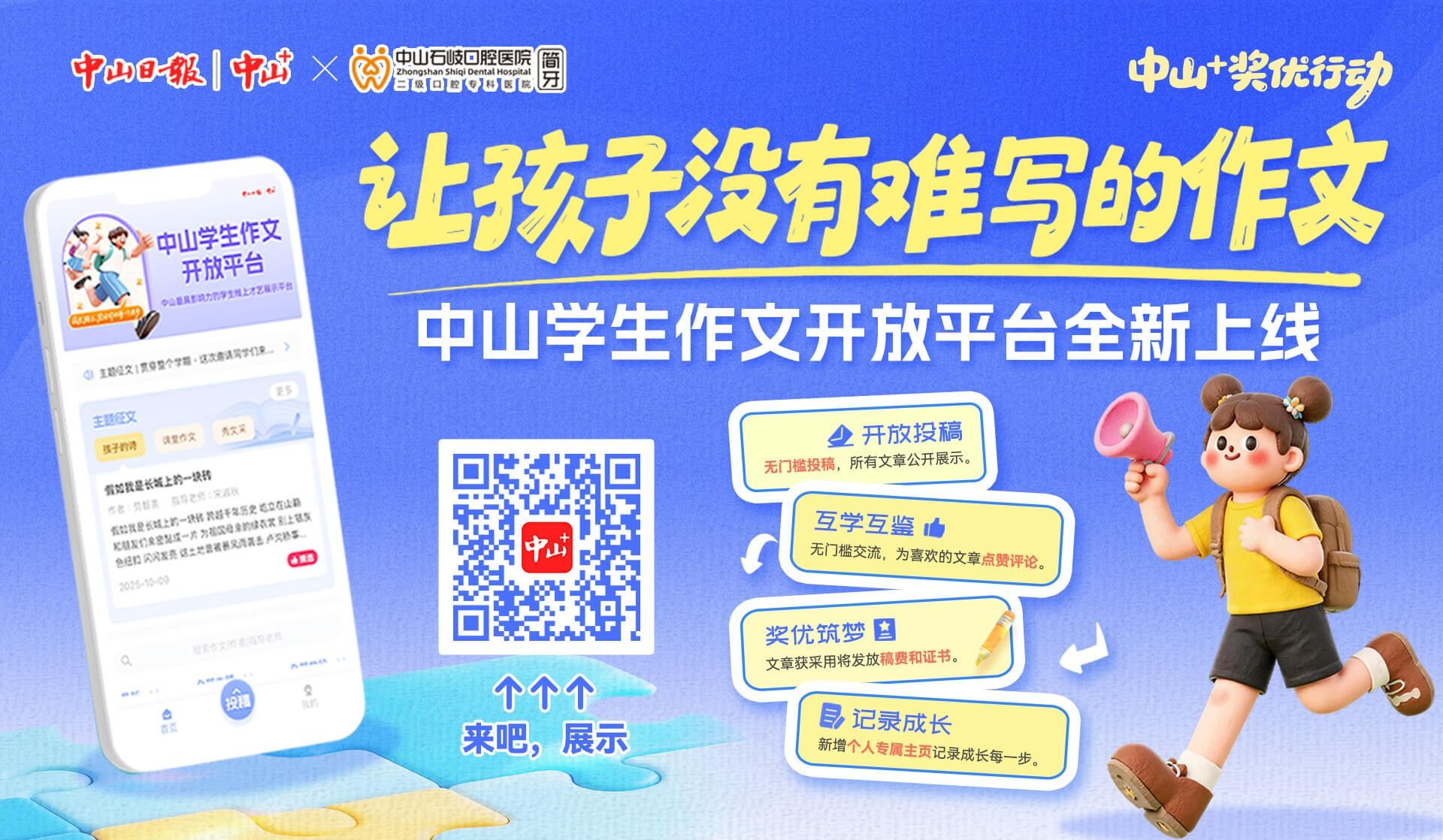 在2025年進(jìn)入收官階段,“中山+”APP、《香山少年報》攜手中山石岐簡牙口腔,以“擁抱”的名義,邀請全市的孩子,用詩筆和畫筆捕捉生活中每一個溫暖的擁抱瞬間。