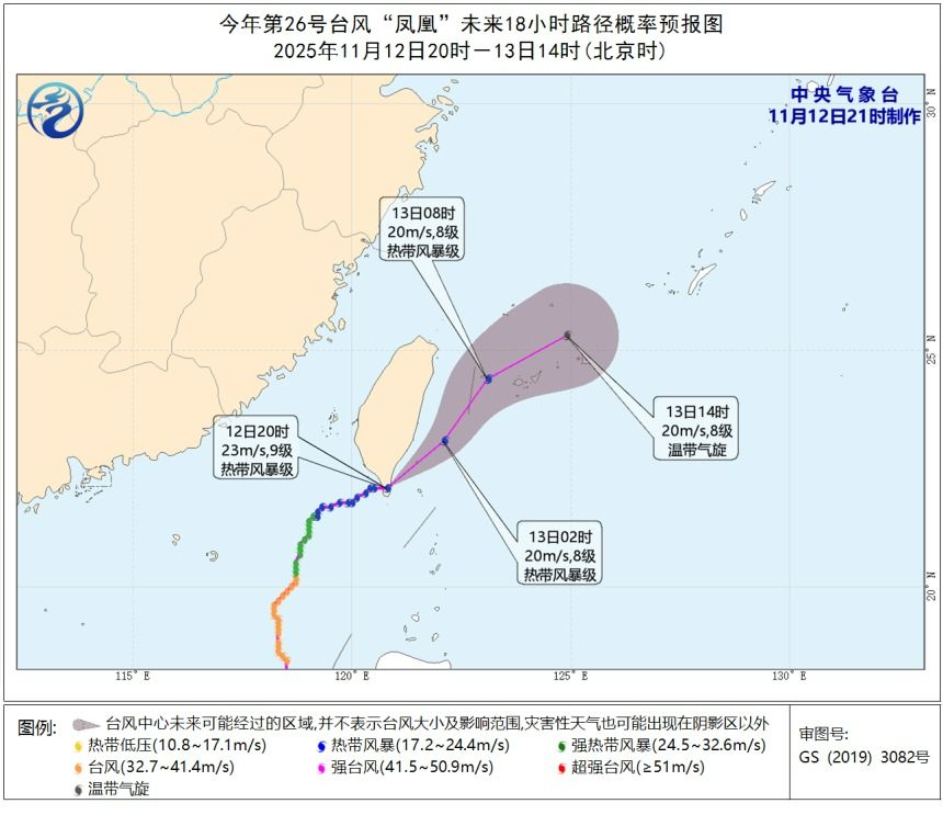 登陸后,臺(tái)風(fēng)“鳳凰”將自西向東穿過(guò)臺(tái)灣島南部,隨后將在臺(tái)灣島東側(cè)繼續(xù)東北行,并逐漸變性為溫帶氣旋。明后天,受冷空氣影響,南海北部、臺(tái)灣海峽、東海等海域還會(huì)有大風(fēng)天氣,東南沿海的降雨也會(huì)隨之減弱、減少。