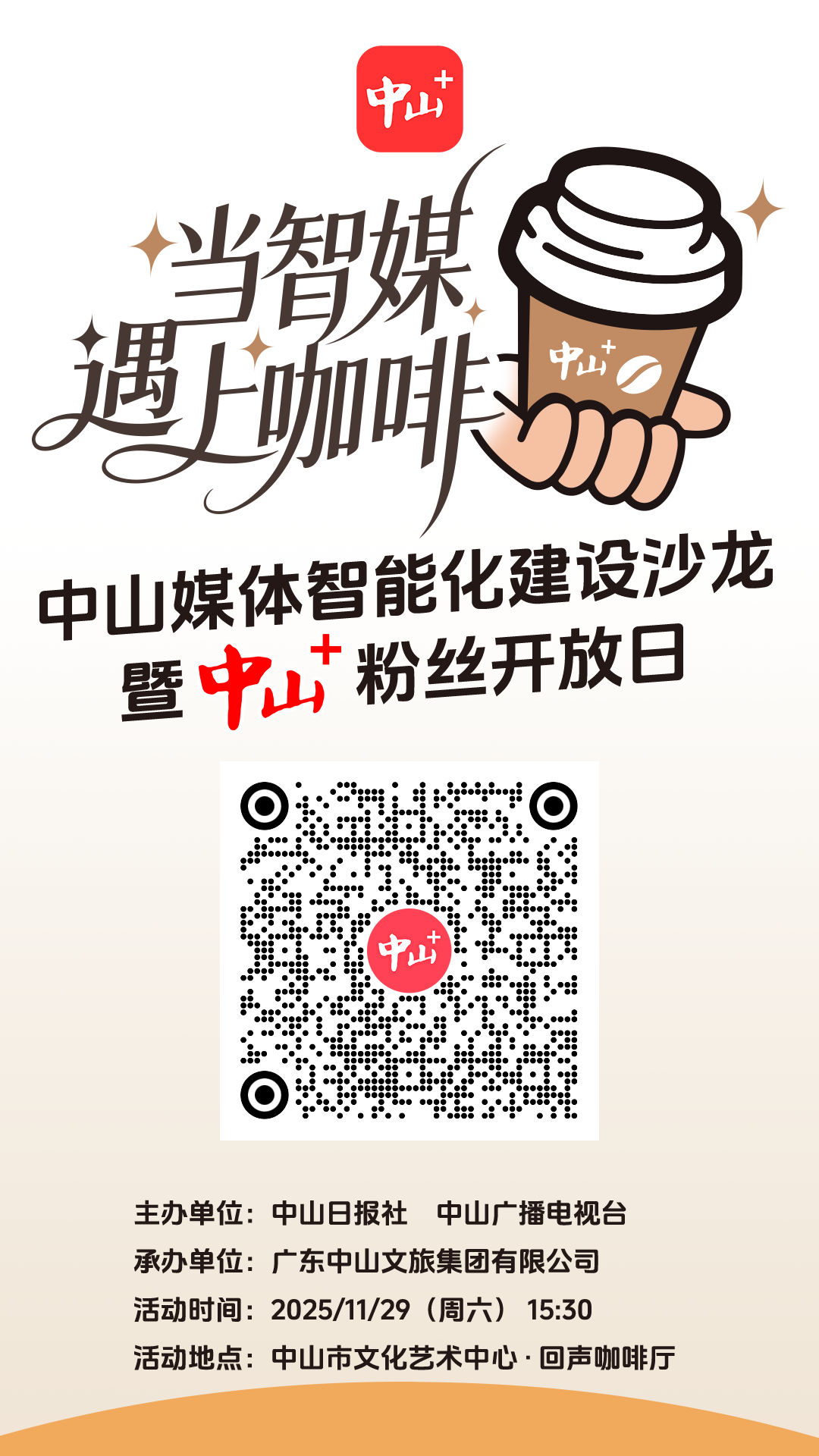 因此,在“當(dāng)智媒遇上咖啡——中山媒體智能化建設(shè)沙龍暨“中山+”粉絲開放日”活動(dòng)啟動(dòng)之際,中山+App再攜手“回聲咖啡 Echo Café”,為廣大市民送出福利: