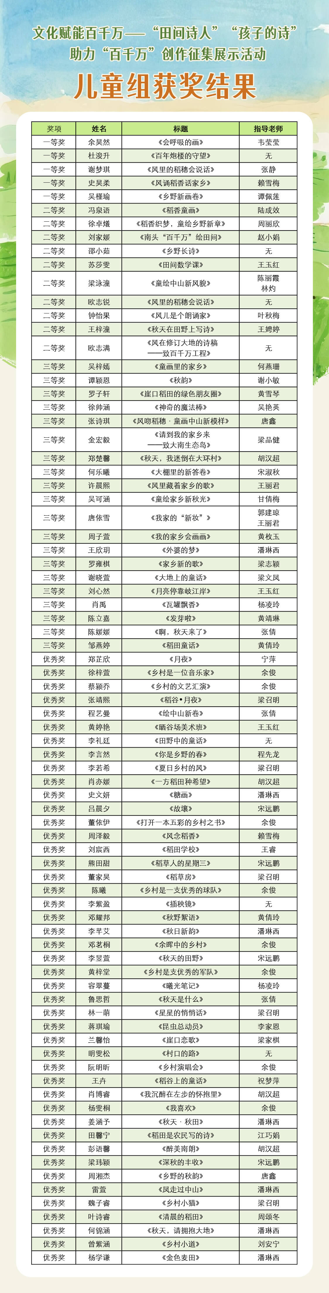 感謝每一位用筆尖丈量鄉(xiāng)土的詩者,是你們讓童心與稻浪一同起舞,讓詩意隨炊煙裊裊升騰。本次活動(dòng)已圓滿落幕,期待下次再見~