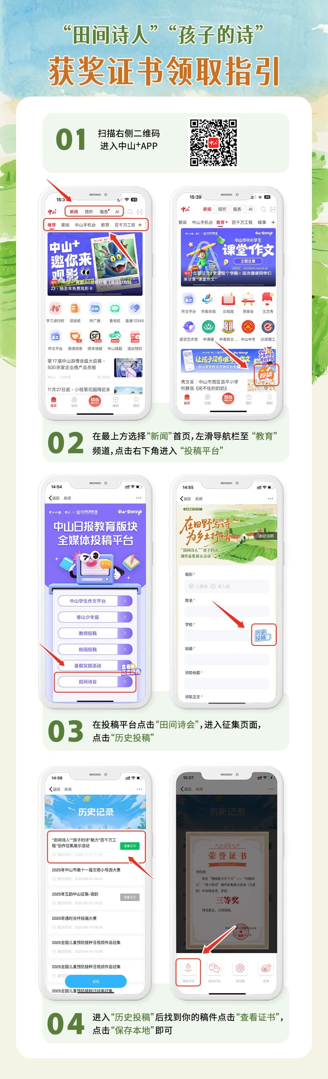 即日起,各位大小詩人也可通過“田間詩會”主題征集系統(tǒng),自主下載電子版證書。