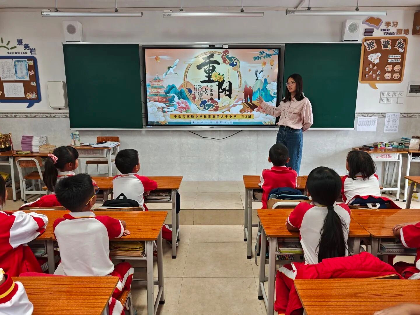 大豐小學(xué)各班級(jí)同步開展重陽節(jié)主題班會(huì)。學(xué)校供圖