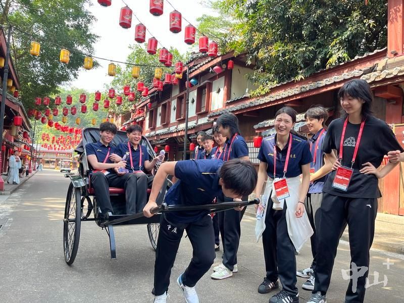 運(yùn)動員們在中山影視城游玩。記者 李紅 攝