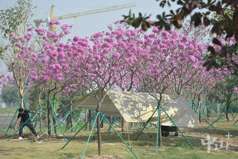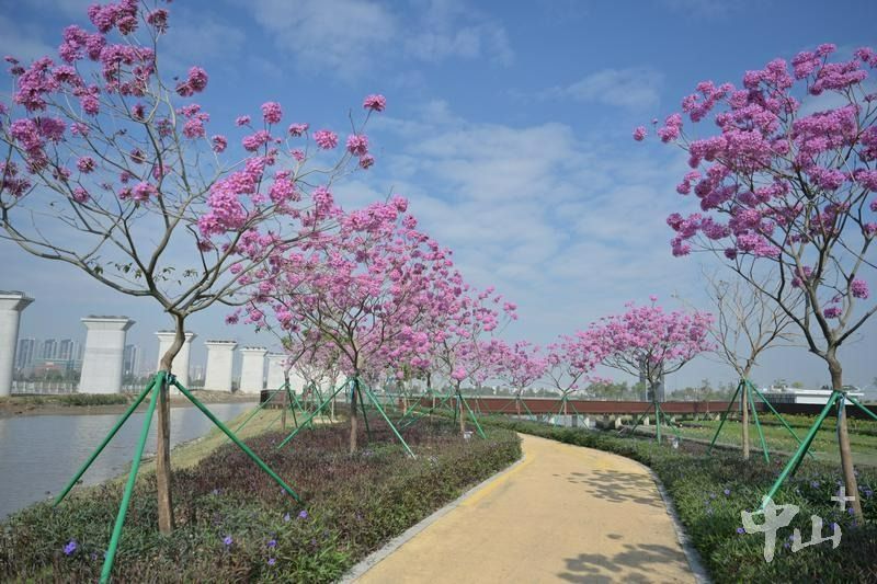 在中山人才公園,一片新植的紫花風鈴木已悄然盛開,沿步道兩側形成一條溫柔的“花廊”。正在拍照的市民何女士欣喜地說:“今天本來是隨意走走,沒想到遇上這么漂亮的花!”據(jù)了解,這60株紫花風鈴木是今年5月“我為中山種棵樹”活動中種下的,如今迎來了它們在中山的首次盛放。紫花風鈴木開花為一年一期,花期約二三十天,眼下正值最佳觀賞期。