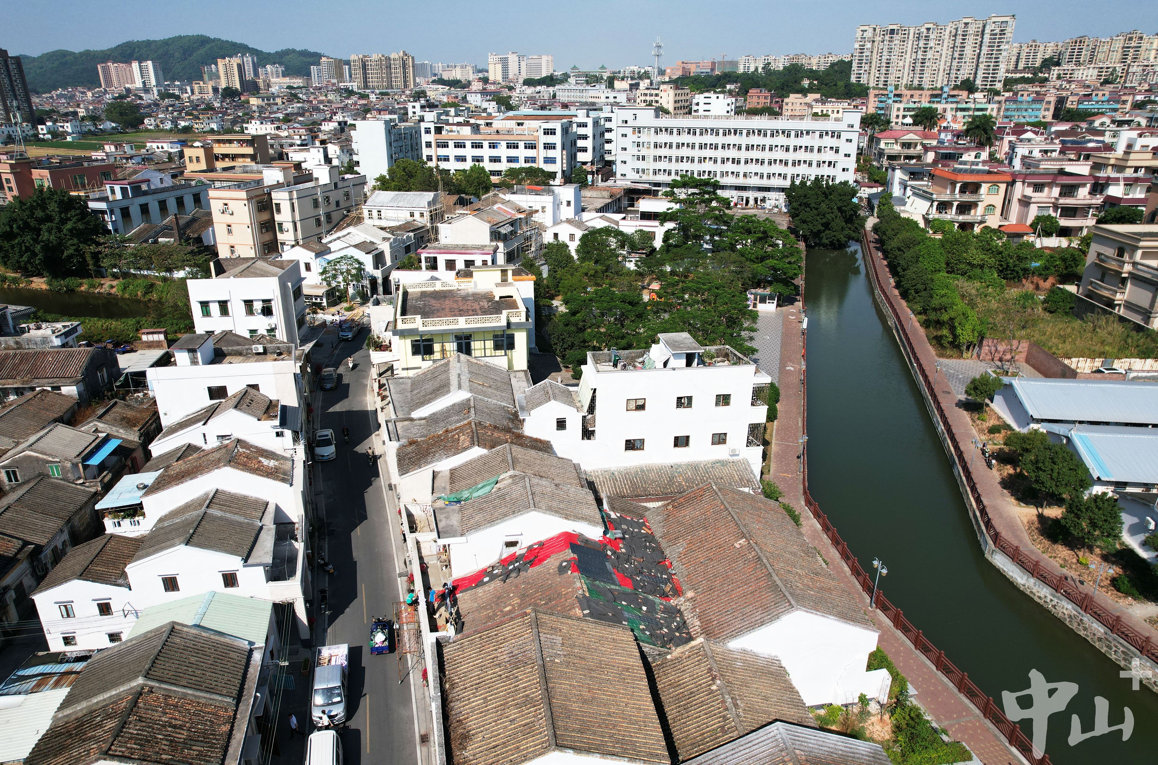 陽光下,“中醫(yī)蕭錦樂寓所”的紅色墻繪訴說著老街往事,米黃色的騎樓街泛著溫潤的光,紅色勒杜鵑沿街盛放,基尾涌旁的生態(tài)小公園草木蔥蘢——這條中山市村鎮(zhèn)唯一保存至今的騎樓街,正以98%的改造完成度,迎來“修舊如舊”后的華麗轉(zhuǎn)身。