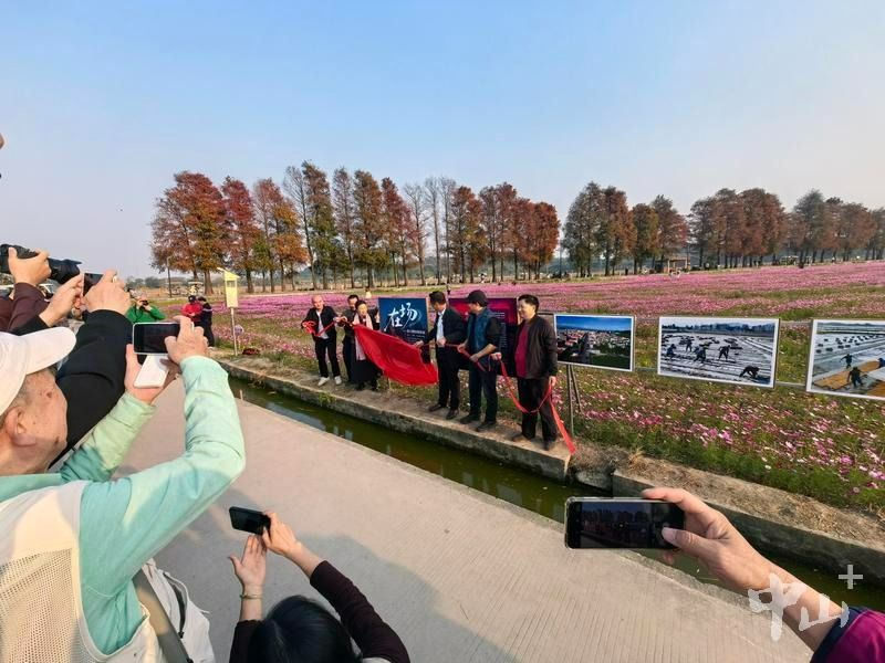 活動(dòng)現(xiàn)場(chǎng),數(shù)百畝格?;êEc攝影作品交相輝映,鐵質(zhì)展架錯(cuò)落田埂花叢,構(gòu)建出質(zhì)樸與雅致交融的獨(dú)特觀展空間,吸引專業(yè)影人與市民沉浸式感受鄉(xiāng)土脈動(dòng)。