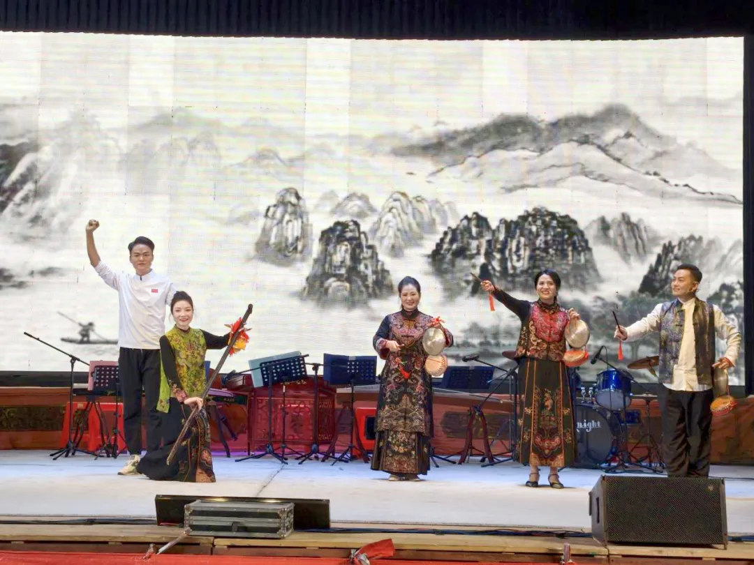 首晚演出以六篇章層層遞進(jìn),亮點(diǎn)紛呈。創(chuàng)編節(jié)目《水鄉(xiāng)潮起粵韻揚(yáng)》拉開(kāi)序幕,瞬間點(diǎn)燃現(xiàn)場(chǎng)氣氛;《情潤(rùn)三角頌華章》以悠揚(yáng)唱腔勾勒三角鎮(zhèn)發(fā)展脈絡(luò),龍舟說(shuō)唱《鄉(xiāng)情如歌》將非遺技藝與鄉(xiāng)土敘事深度融合。三角鎮(zhèn)粵劇非遺傳承基地“少年楊家班”帶來(lái)的《南拳北腿中國(guó)娃》活力滿滿,贏得滿堂喝彩;《柳毅傳書》《紫釵記》等經(jīng)典選段輪番上演,勾起幾代人的集體記憶。梅花獎(jiǎng)得主曹秀琴與國(guó)家一級(jí)演員陳振江聯(lián)袂演繹《花田錯(cuò)會(huì)》,嗓音清亮、韻味醇厚;陳振江的金獎(jiǎng)劇目《回十八》再現(xiàn)梁祝經(jīng)典,引發(fā)全場(chǎng)共鳴。廣府文化名家林星云攜高徒陳俊軒化身“雞公福”,詼諧演繹《當(dāng)口琴邂逅口哨》,現(xiàn)場(chǎng)派送吉祥“雞公欖”,互動(dòng)頻頻、歡聲笑語(yǔ)此起彼伏。尾聲時(shí),全場(chǎng)齊聲高唱《我和我的祖國(guó)》,歌聲嘹亮激昂,將敬老之情與家國(guó)情懷推向高潮。