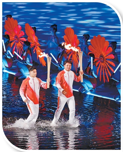 舞臺之上,木棉盛開、花舞綻放。奔跑的“飛人”與躍動的激光馳騁競速,水上高手在涌動的波濤中奮力沖刺,傳遞出體育的蓬勃力量和時代發(fā)展的脈動。