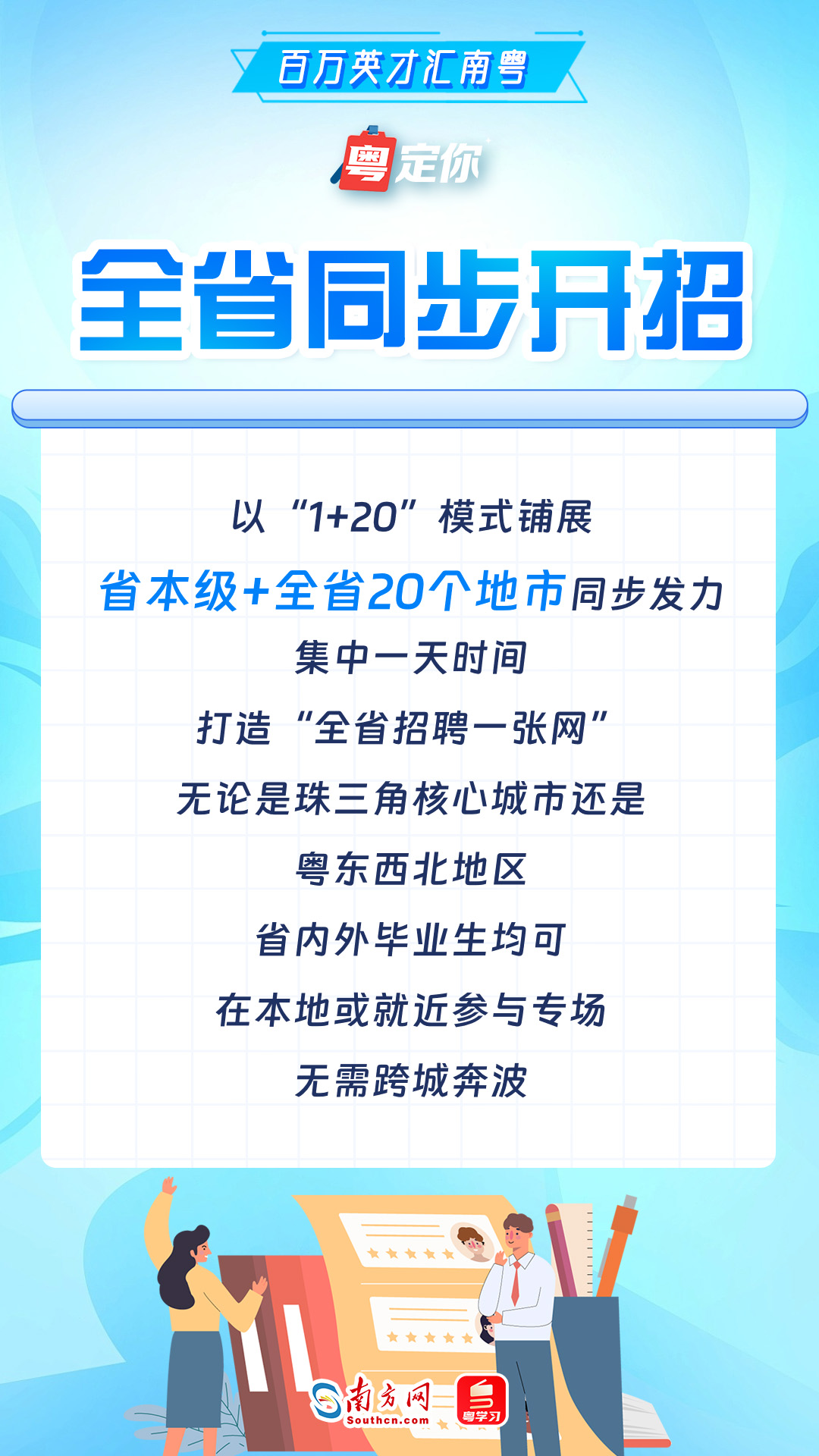 12月8日,廣東將啟動“百萬英才匯南粵”2025年全省聯(lián)動專項招聘活動,省本級和全省20個地市將同步舉辦專項招聘,以“全省聯(lián)動、優(yōu)崗云集”的強勁勢能,向全國高校畢業(yè)生發(fā)出年末“逐夢南粵”的誠意邀約。一組海報了解活動亮點↓↓↓