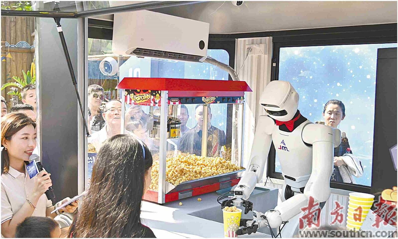 星塵智能機器人在中山市一游樂園內(nèi)售賣爆米花。 南方日報記者 張令 王良玨 張迪 攝