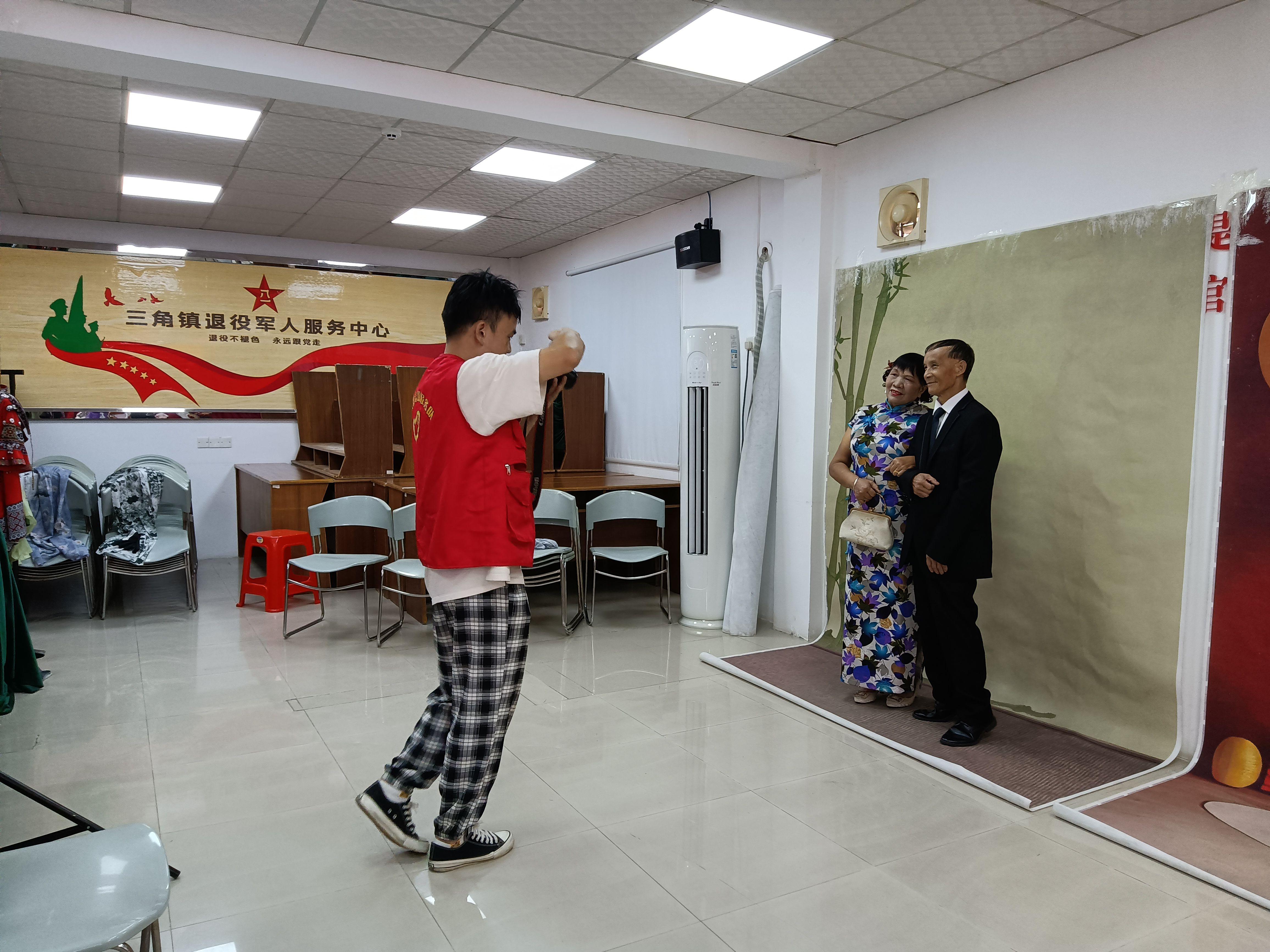 活動現(xiàn)場,三角鎮(zhèn)退役軍人服務中心的會議室被精心布置成臨時攝影棚,分為攝影區(qū)、化妝區(qū)、服裝區(qū)、選片區(qū)和等候區(qū)等多個功能區(qū)域,流程清晰、服務周到。工作人員耐心為退役軍人及家屬化妝、整理服裝、調(diào)整發(fā)型,細致指導拍攝姿勢與表情。攝影師一邊捕捉動人畫面,一邊認真傾聽老兵們講述崢嶸歲月。在輕松愉快的氛圍中,一個個拍攝任務順利完成,活動現(xiàn)場歡聲不斷、暖意融融。