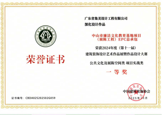 近日,由中山市紀(jì)委監(jiān)委統(tǒng)籌推進(jìn)、市屬國企中山投控旗下文旅投公司運(yùn)營的尚園公共文化中心(中山市廉潔文化教育基地,簡稱尚園)傳來捷報(bào)。該展陳工程EPC總承包項(xiàng)目由廣東省集美設(shè)計(jì)工程有限公司深化設(shè)計(jì),在第十一屆中國建筑裝飾設(shè)計(jì)藝術(shù)作品展暨設(shè)計(jì)大賽中,榮獲“公共文化及展覽空間類”一等獎(jiǎng)。尚園項(xiàng)目憑借在空間敘事、文化表達(dá)與功能創(chuàng)新上的卓越表現(xiàn),從全國眾多精品力作中脫穎而出。此次獲獎(jiǎng)不僅是設(shè)計(jì)領(lǐng)域的權(quán)威認(rèn)可,更印證了其“空間活化+廉潔文化+民生服務(wù)”融合發(fā)展模式的成功實(shí)踐。