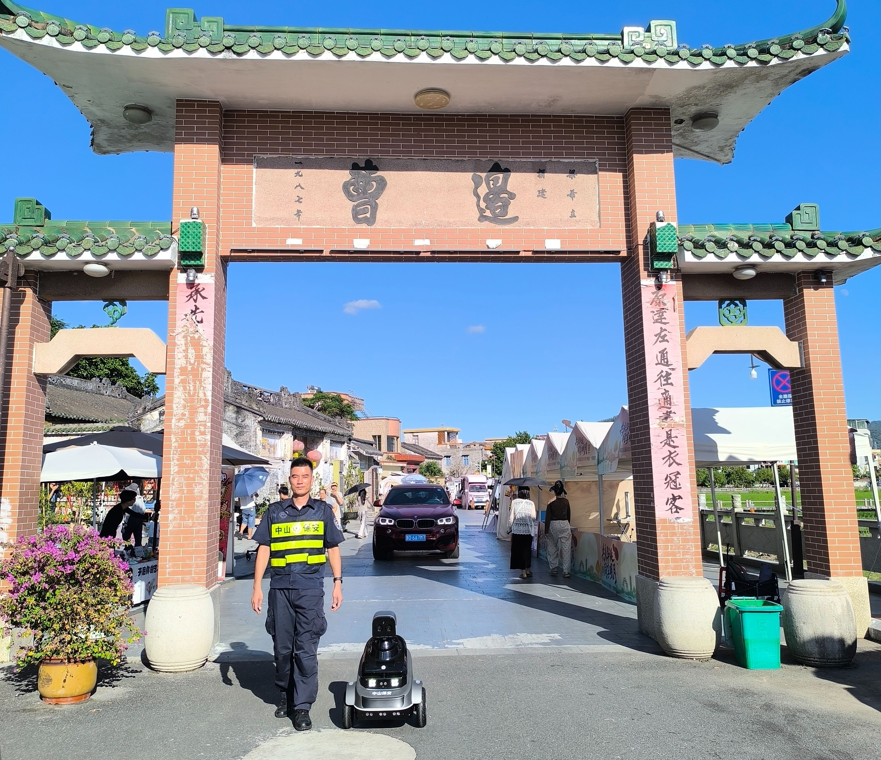 此外,興中集團(tuán)旗下保安公司依托“紅盾先鋒”黨建品牌,結(jié)合當(dāng)?shù)匚穆冒l(fā)展定位,量身定制“安保賦能?曹邊振興”專項(xiàng)方案,聚焦“秩序管控、快速封控、應(yīng)急處突”等關(guān)鍵環(huán)節(jié),構(gòu)建“資源共享、優(yōu)勢互補(bǔ)、協(xié)同高效”的長效合作機(jī)制,創(chuàng)新引入“機(jī)器人+保安”模式,在曹邊村展示智能巡邏機(jī)器人,集成自主導(dǎo)航、AI識別、紅外熱成像等先進(jìn)技術(shù),實(shí)現(xiàn)全天候、無死角智能巡防,有效提升了游客的安全感,為曹邊村文旅活動的安全有序開展提供了堅(jiān)實(shí)的保障。