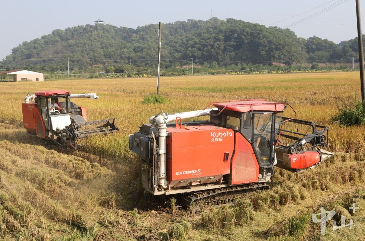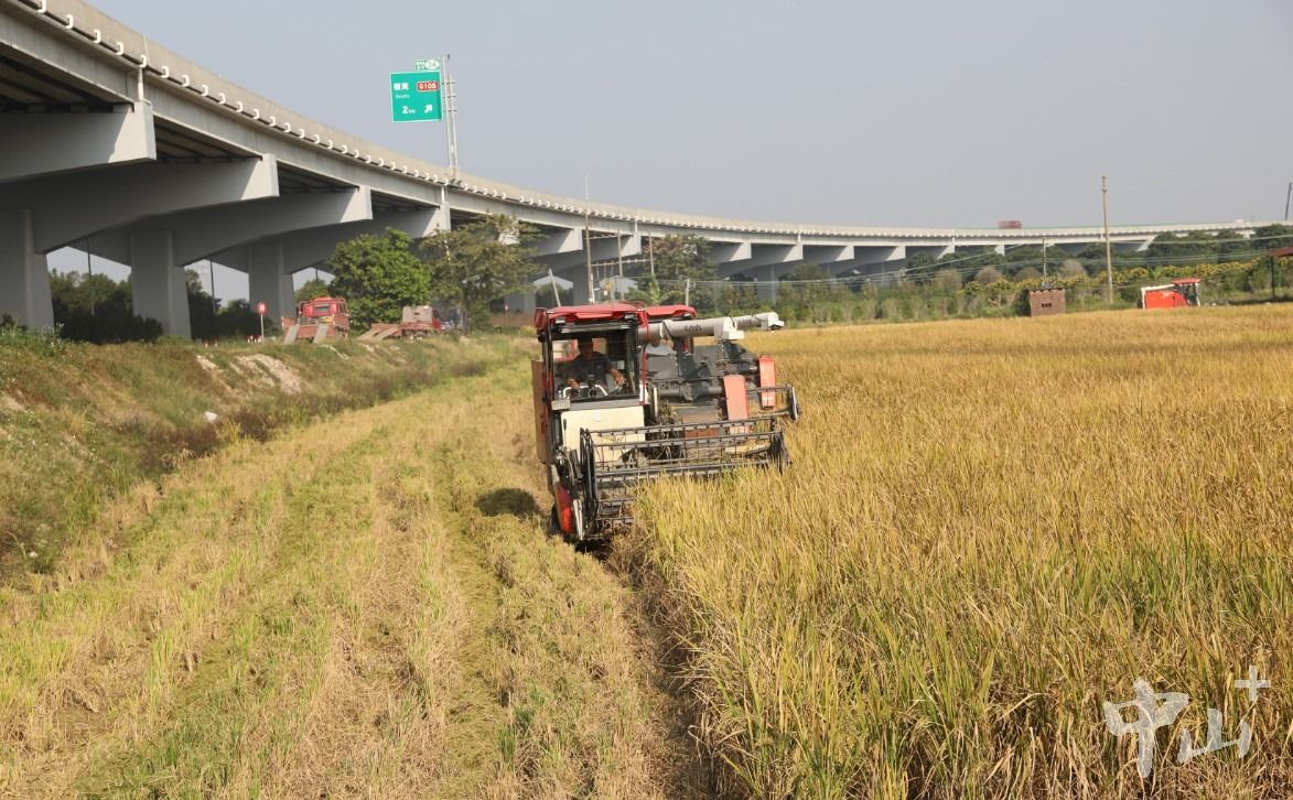 板芙鎮(zhèn)里溪村200多畝稻田迎來(lái)收獲。記者 王云 攝