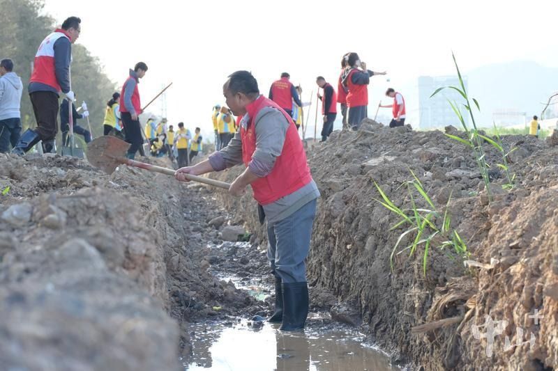 與此同時(shí),在龍?zhí)凉じ膮^(qū)的舊排水溝旁,志愿者們手持鐵鍬,彎腰清理堆積已久的污泥。“之前水看起來渾濁,草叢里蚊蟲也多,清理之后環(huán)境好多了,大家健康也有了保障。”來自中山慶璉金屬制品有限公司的員工李先生已是第十次參與清淤。他從河南來中山二十多年,一直住在坦洲,如今已成為清淤志愿活動的“老面孔”。盡管衣服鞋子都沾上了些許泥漿,但他仍然面帶笑意:“就是想讓大家都有一個碧水藍(lán)天的好環(huán)境!”