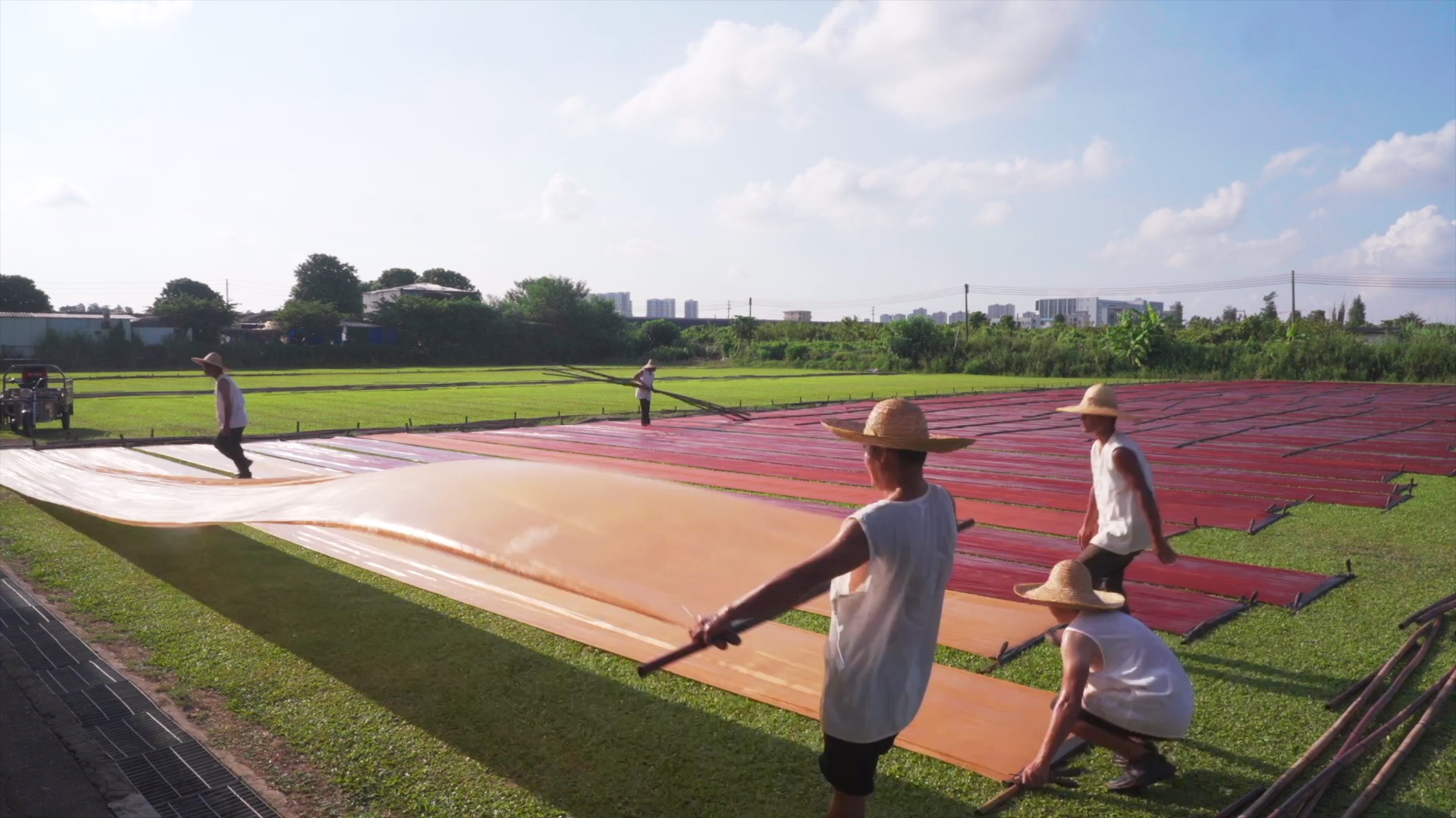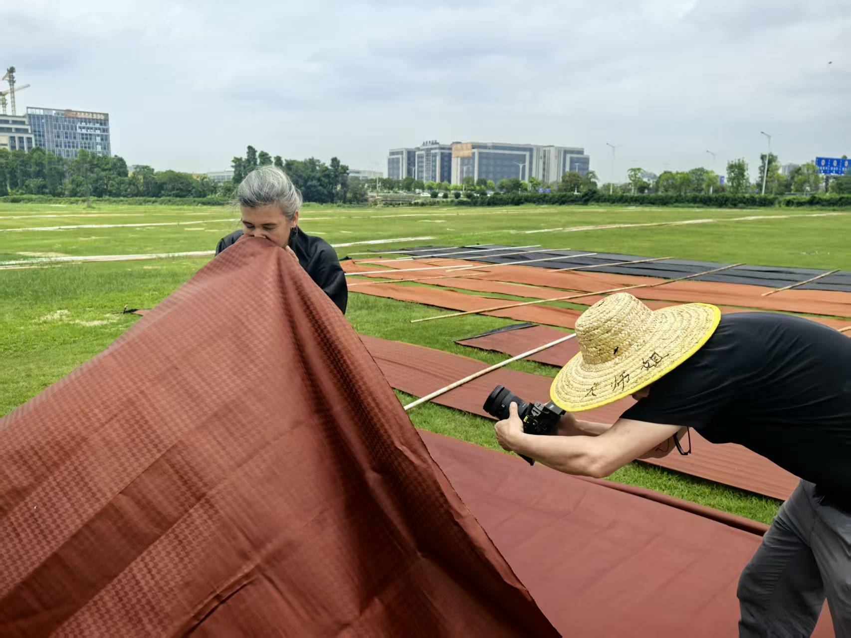 拍攝過程中,團隊深入廣西云開山險峻山林,追蹤采莨人的艱辛;在倫教曬場連續(xù)守候20余天,捕捉陽光與布匹的每一次交互;遠赴巴黎,記錄香云紗在國際舞臺的接受與碰撞。鏡頭之下,既有曬莨、過泥等數(shù)十道工序的細膩呈現(xiàn),也有桑農(nóng)、匠人與國際設計師的命運交織。從香云紗生產(chǎn)源頭的農(nóng)民、工人,到深耕技藝的非遺傳承人;從鉆研歷史的專家、學者,到跨界創(chuàng)新的設計師、企業(yè)家;從親歷變遷的順德媽姐,到歷史人物、名家后人,更有熱愛中國文化的國際友人,近百名受訪者以親身經(jīng)歷與專業(yè)視角,為影片注入多元鮮活的文化注解。團隊在真實敘事中捕捉技藝的溫度,探尋“天人合一”的東方智慧,進而升華為對文化韌性、產(chǎn)業(yè)創(chuàng)新與文明對話的深層思考,讓源于佛山的古老技藝展現(xiàn)出與世界共鳴的全球視野與傳播價值。