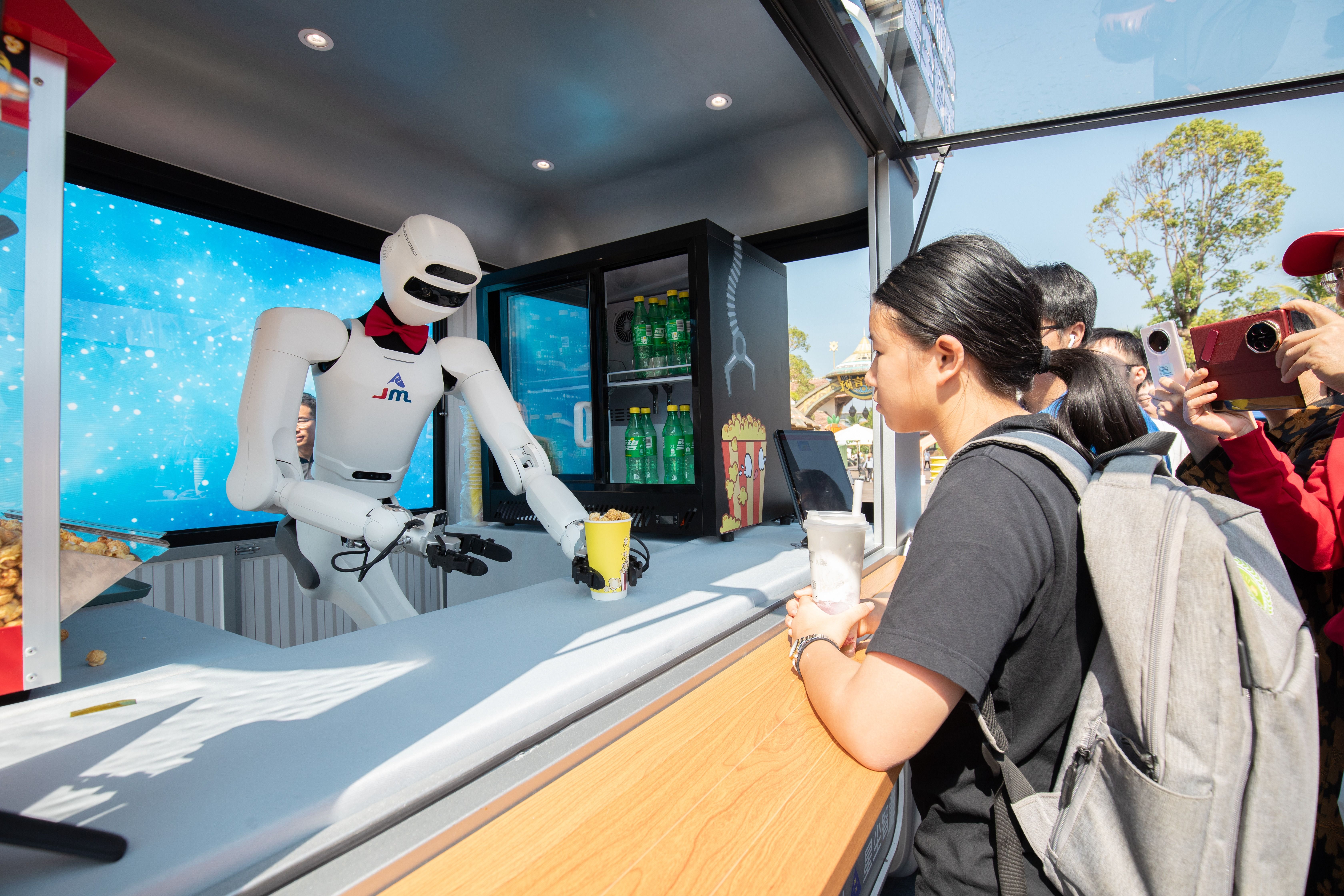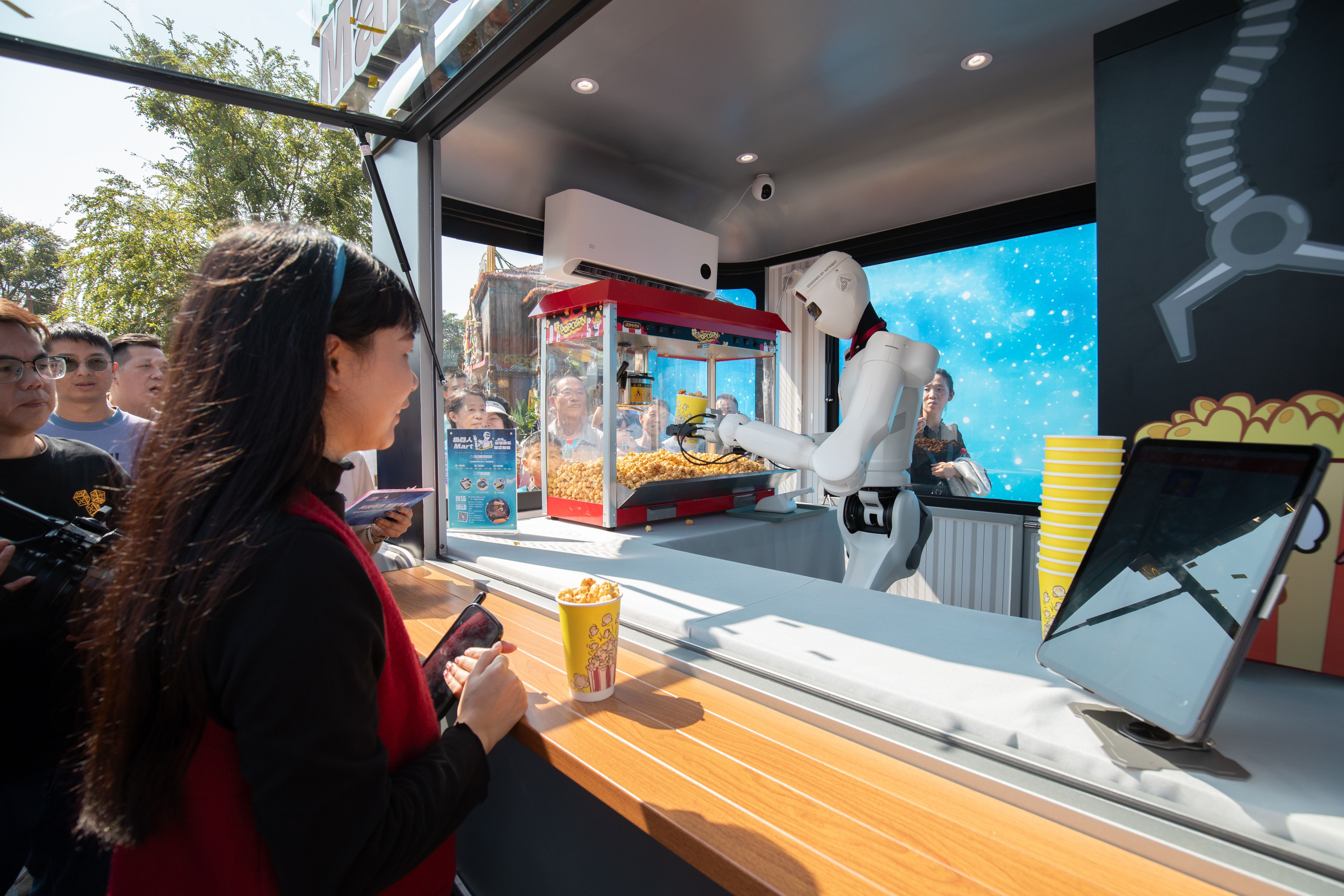 一手夾起杯子,一手夾起鏟子,穩(wěn)穩(wěn)地將爆米花裝進(jìn)杯子,轉(zhuǎn)身放到臺(tái)面……11月15日,在中山奇遇時(shí)光樂(lè)園,由國(guó)內(nèi)文旅裝備龍頭企業(yè)金馬游樂(lè)與AI機(jī)器人公司星塵智能共研共創(chuàng)的“機(jī)器人mart零售服務(wù)店”,剛在發(fā)布會(huì)上亮相,便帶來(lái)了文旅消費(fèi)新場(chǎng)景。