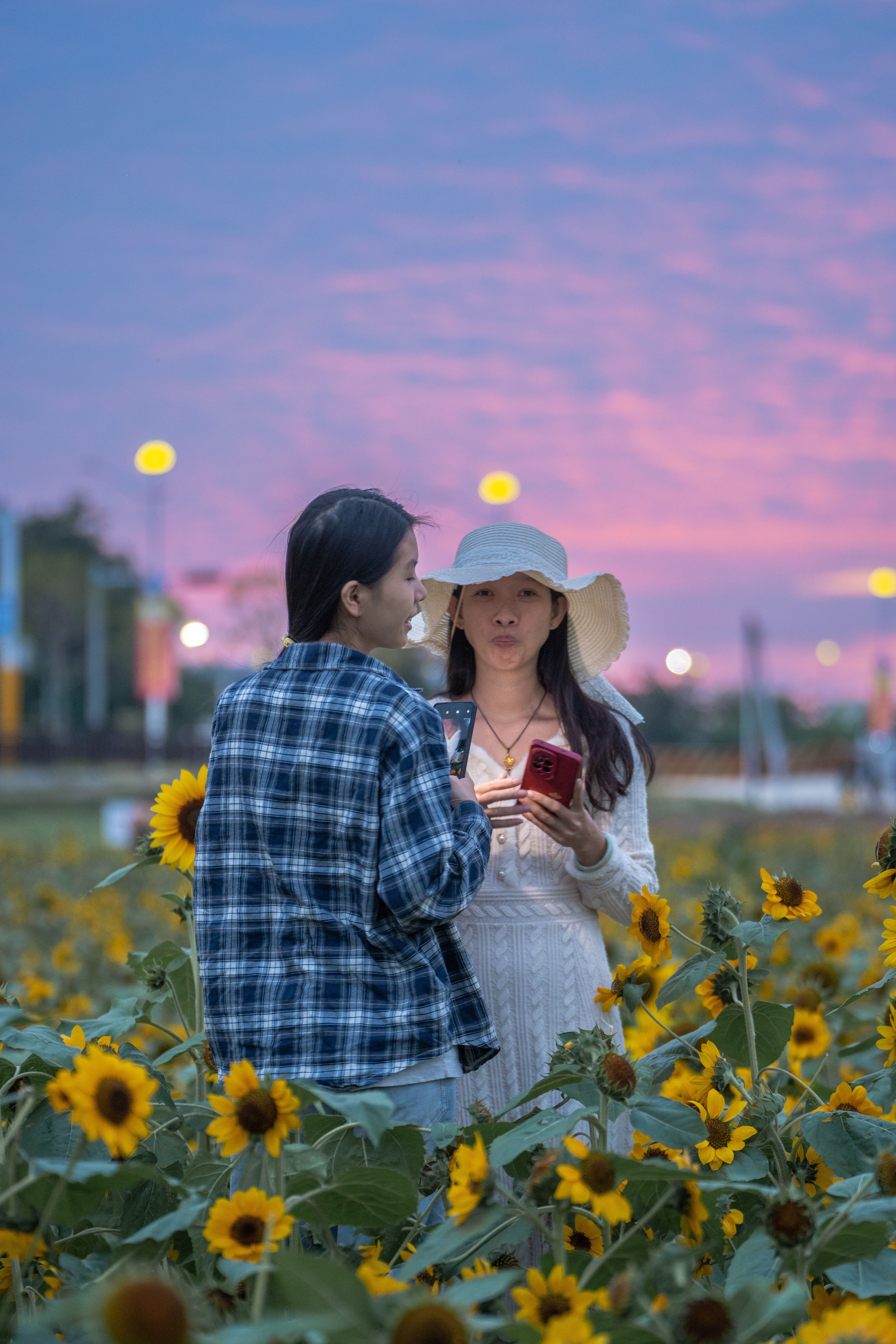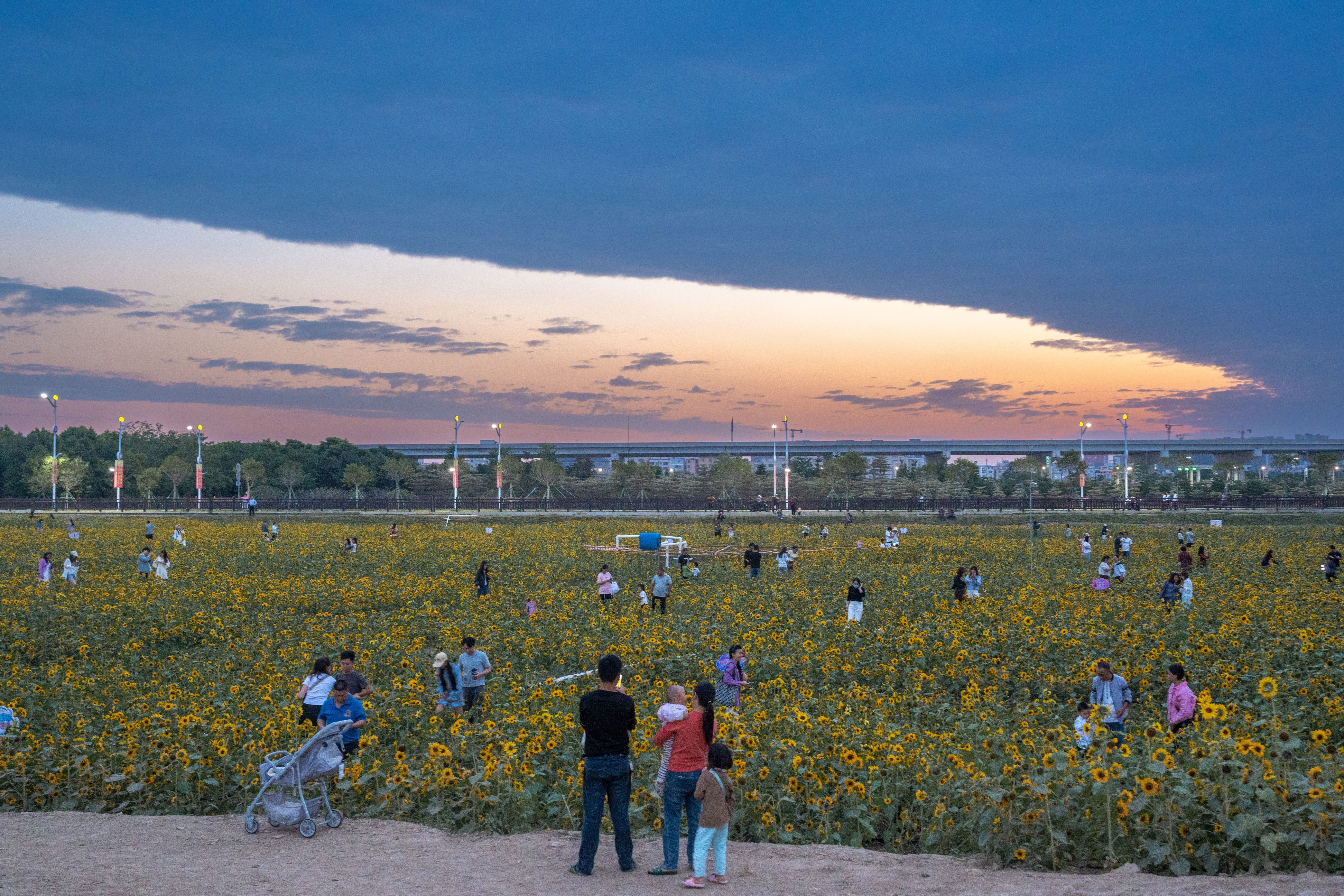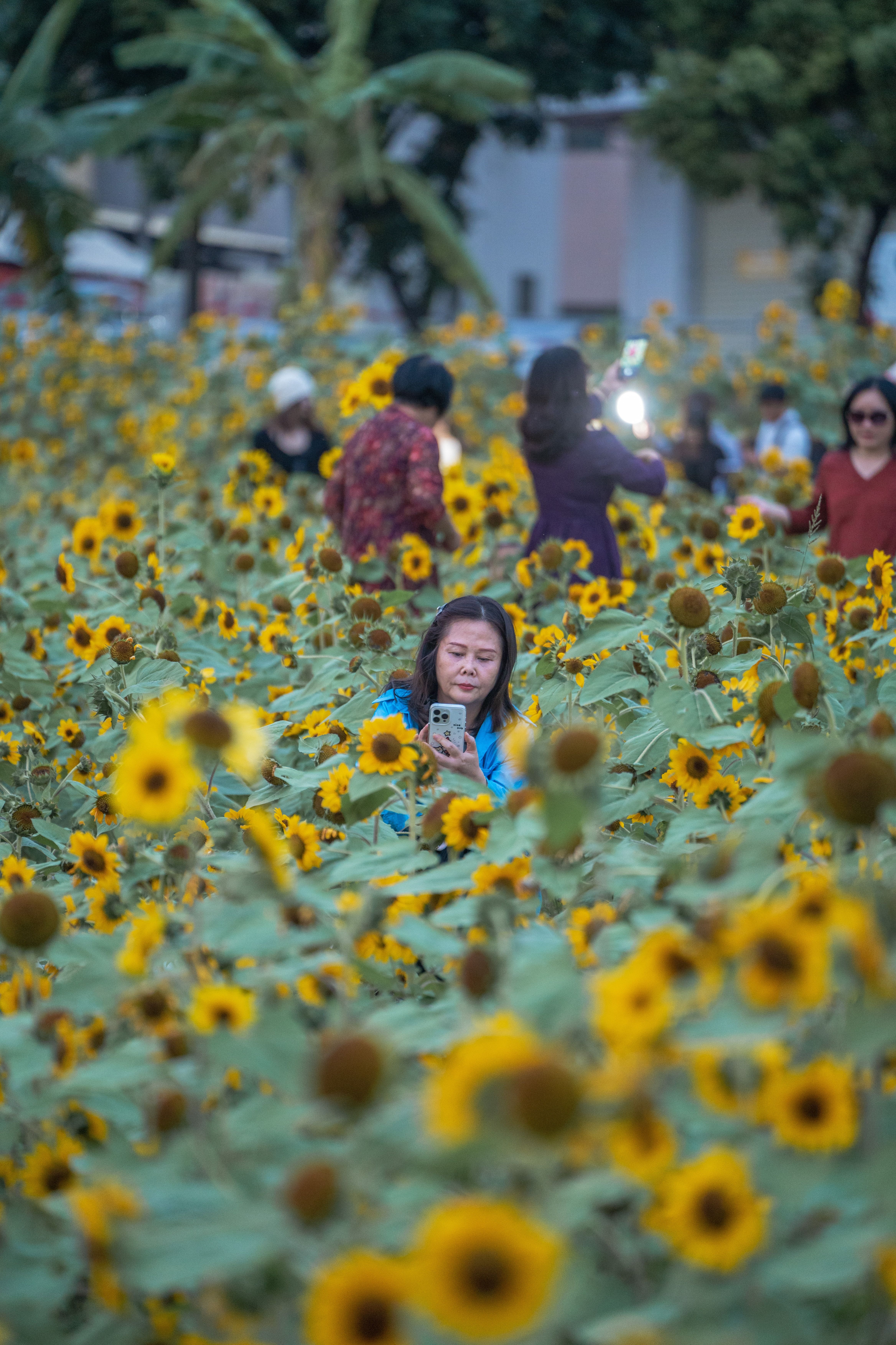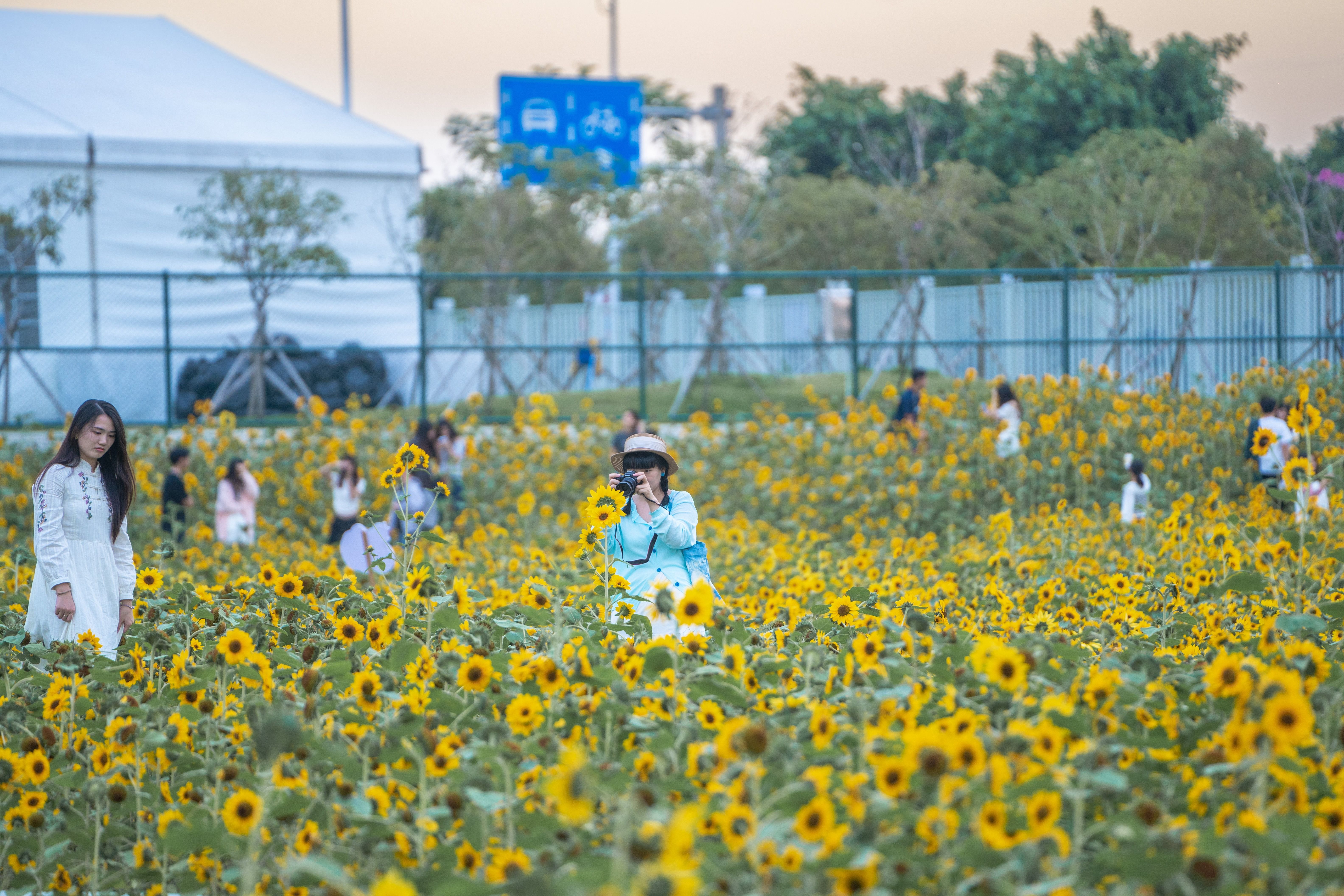 不少市民專程前來觀賞,燦爛笑容與金黃花海相映成趣,隨手就能拍出富士膠片感的治愈畫面,社交媒體掀起打卡刷屏熱潮。