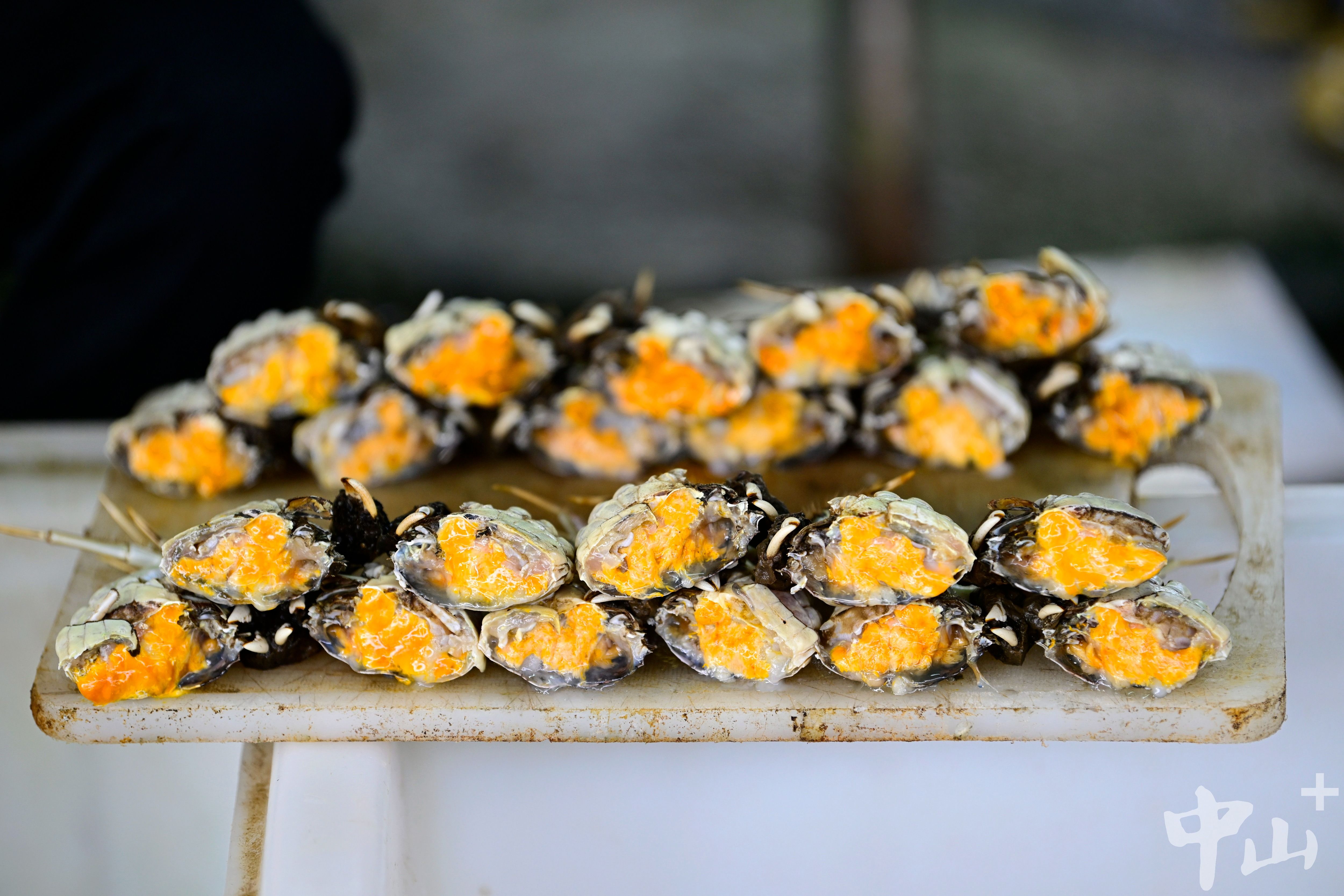 集市的螃蟹肉厚黃多。記者 余兆宇 攝
