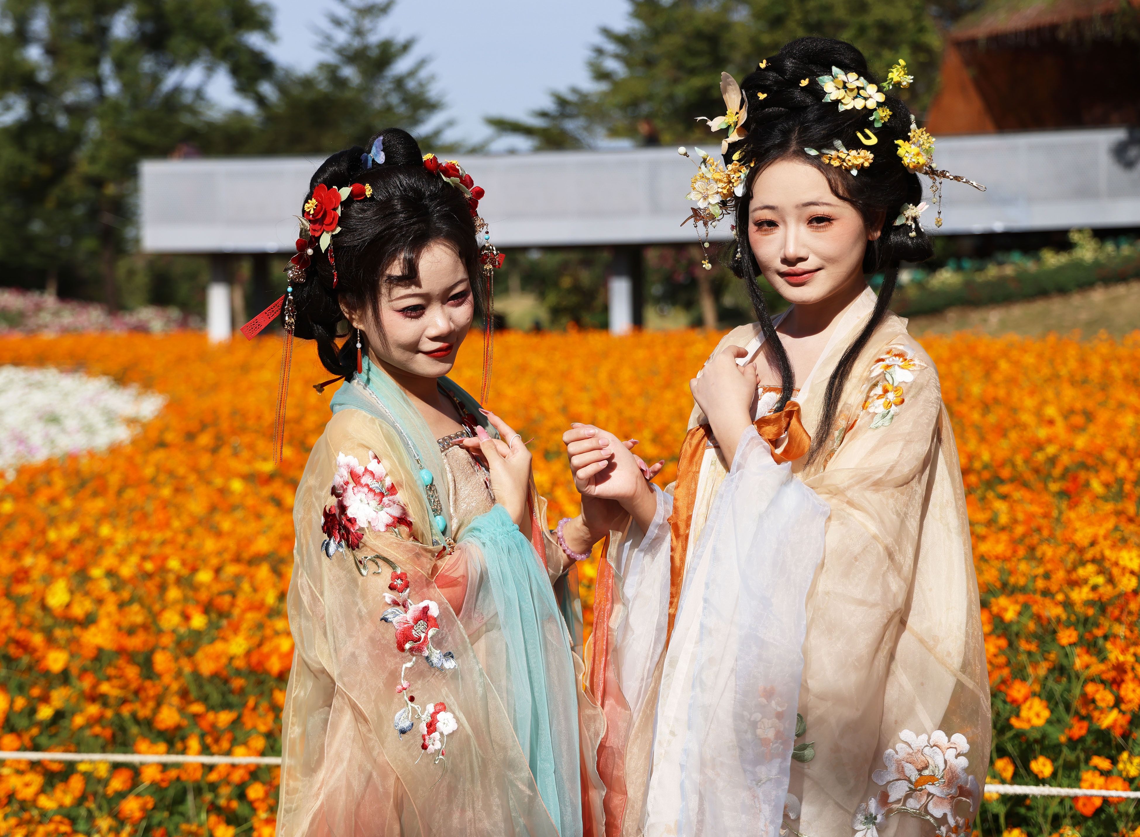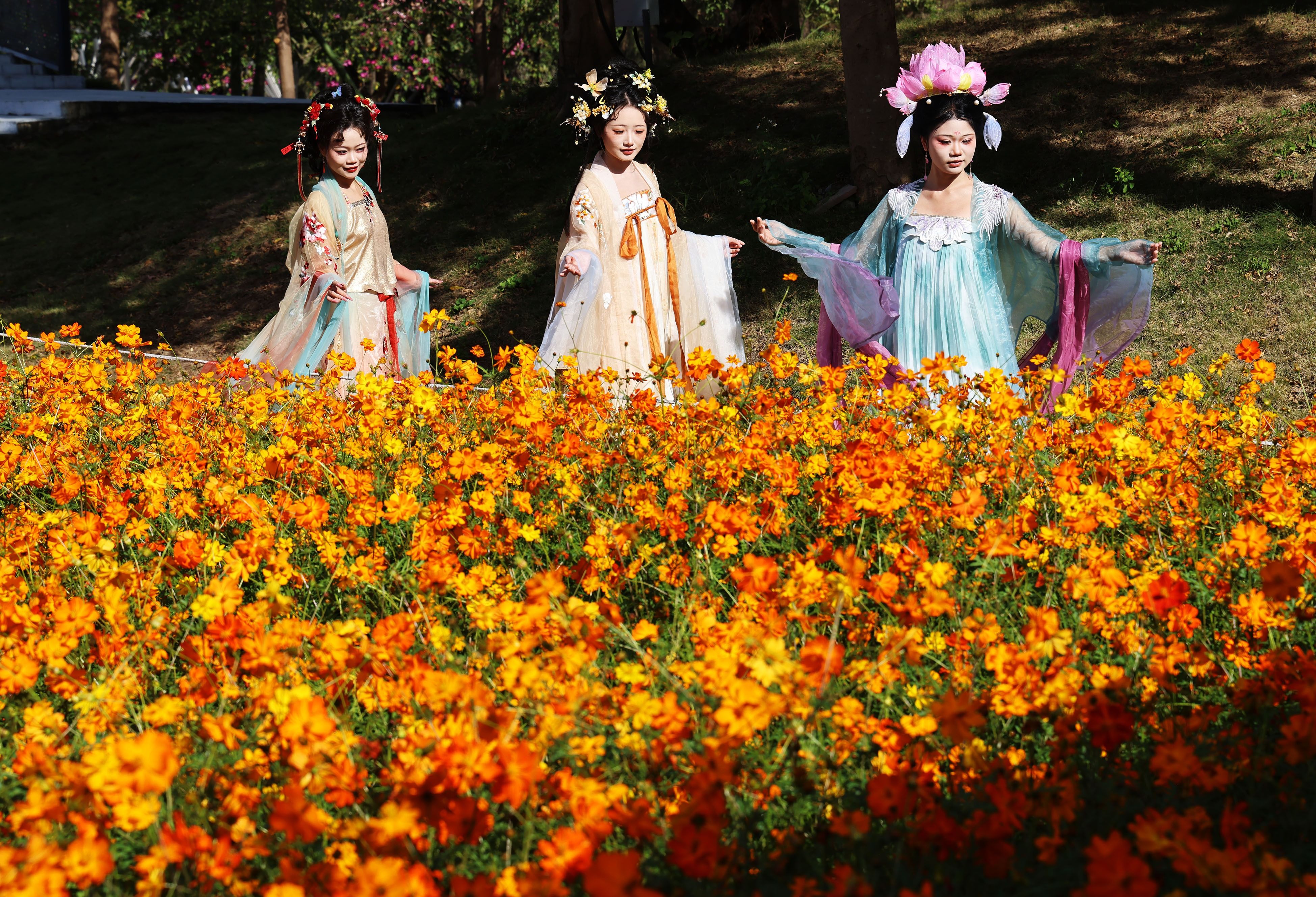 現(xiàn)場(chǎng),來(lái)自抖音平臺(tái)的自媒體達(dá)人、身著唐裝的“花仙子”們表示,她們的裝扮是為了更好地融入花海,傳播傳統(tǒng)文化之美。