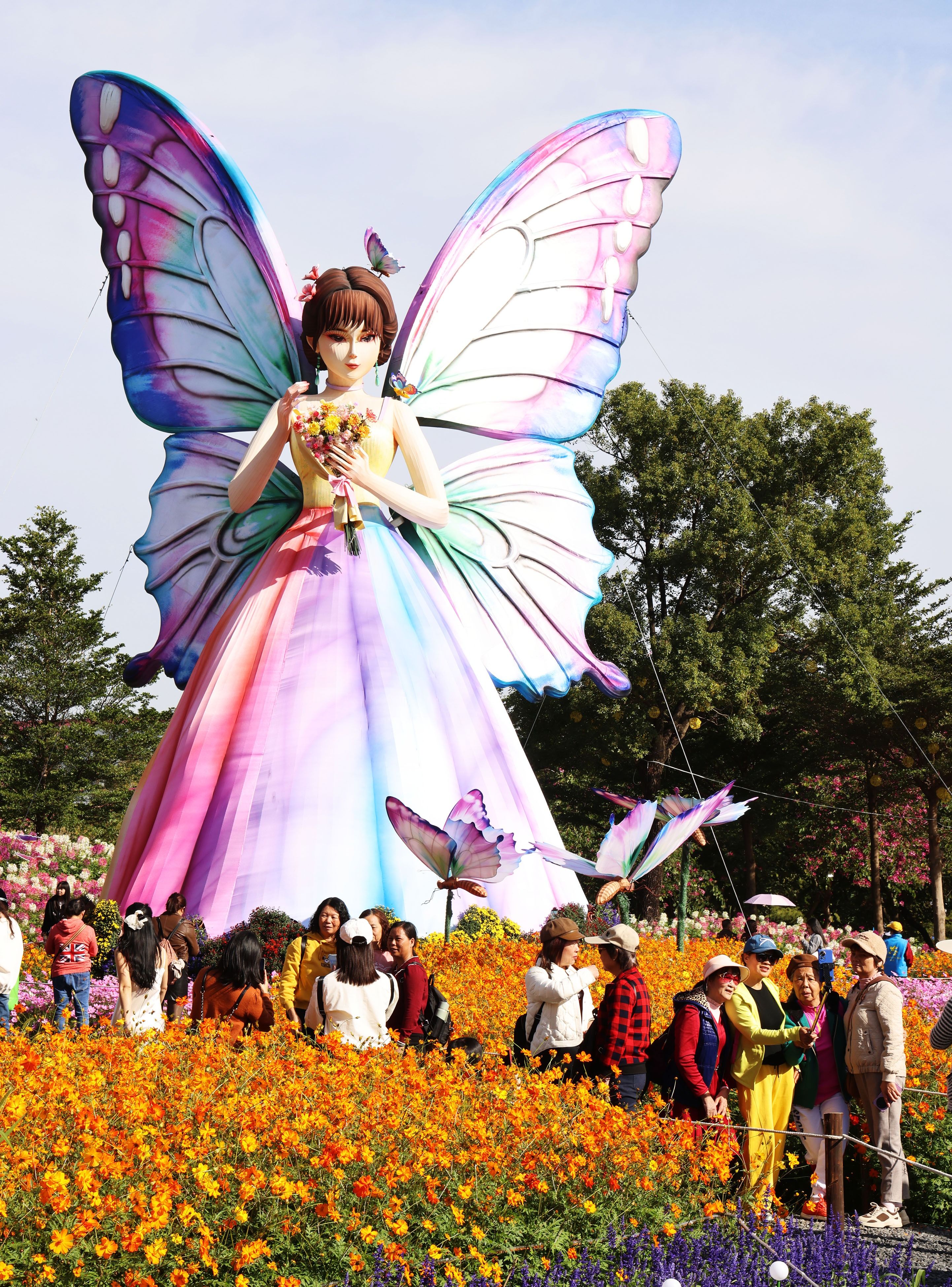 花海區(qū)的“蝴蝶女神”雕塑引人注目。記者 文波 攝