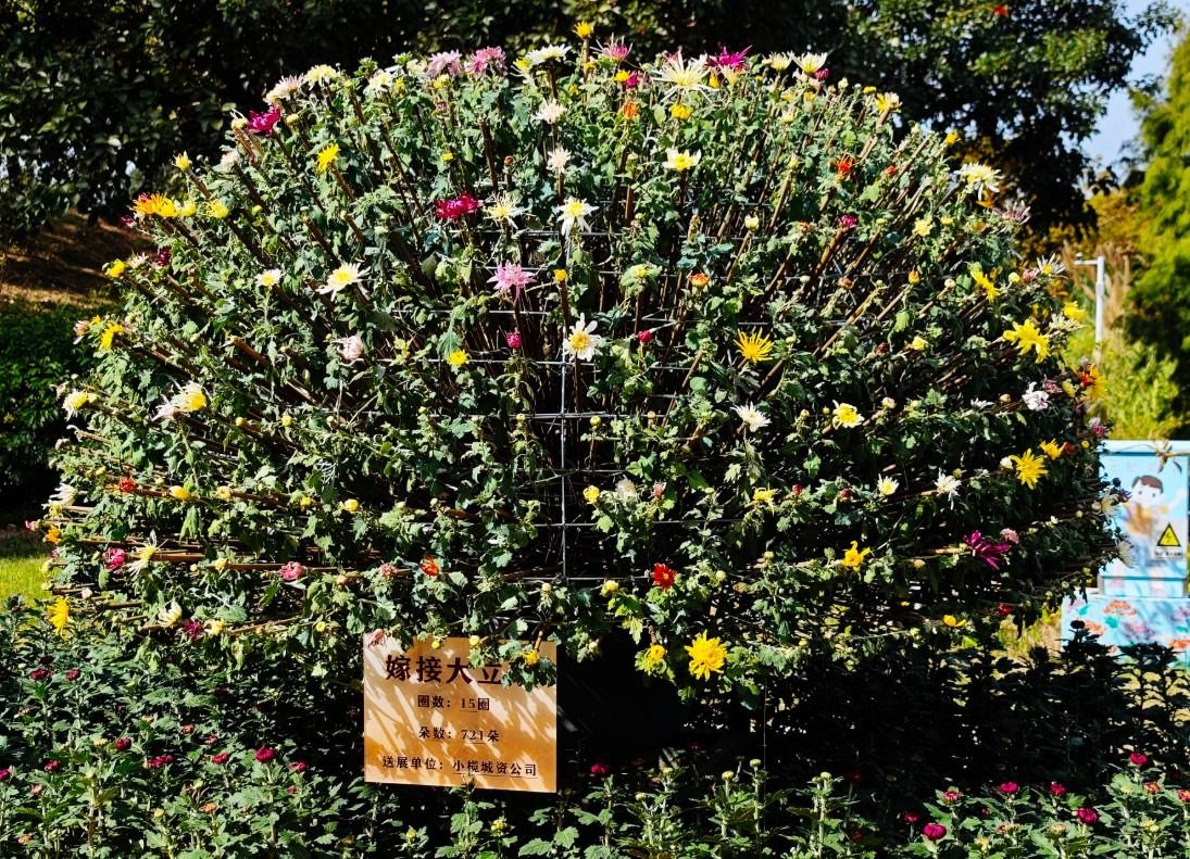 在展會(huì)現(xiàn)場(chǎng),“中國(guó)菊藝大師”陳仕波向記者揭曉了本屆菊花會(huì)的“鎮(zhèn)園之寶”——一盆成功嫁接721個(gè)不同品種、共計(jì)扎作15圈的大立菊。這盆凝聚了匠人心血與智慧的作品,嫁接過(guò)程耗時(shí)數(shù)天,整體養(yǎng)護(hù)周期長(zhǎng)達(dá)18個(gè)月。其嫁接品種數(shù)量已大幅超越此前“一株大立菊嫁接614個(gè)不同品種”的吉尼斯世界紀(jì)錄,展現(xiàn)了小欖菊花嫁接技藝的卓絕水準(zhǔn)。