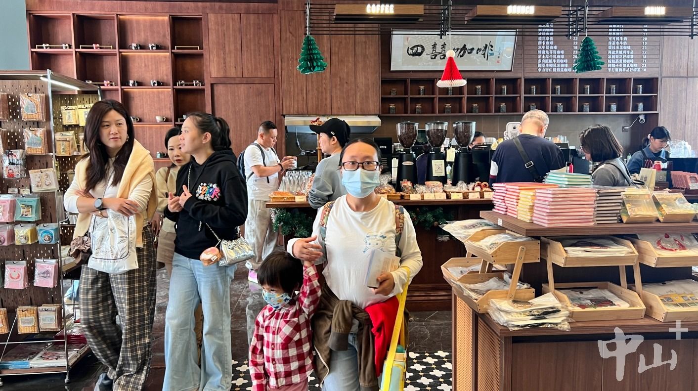 同樣注重文化表達(dá)的還有四囍咖啡。在這里,主理人梁靜欣深耕“咖啡+文創(chuàng)+文化”模式,讓年輕的活力體現(xiàn)得更為直接。在裝潢上,店內(nèi)的主基調(diào)融合嶺南與南洋建筑風(fēng)情,其間還豎著幾根沉香木,彰顯著特色的香山文化。梁靜欣也將門店視為文化的載體,深度挖掘“燈影花”、小欖菊花、思豪大酒店等步行街及中山本土元素,推出眾多特色原創(chuàng)文創(chuàng)產(chǎn)品,其中一款可旋轉(zhuǎn)的小欖菊花冰箱貼上市一周便售出上千個(gè)。梁靜欣透露,他們每月還會(huì)舉辦2-3場(chǎng)藝人見(jiàn)面或文化交流活動(dòng),借助名人效應(yīng)與新媒體傳播主動(dòng)“出擊”,成功吸引了大批年輕客群與港澳游客。